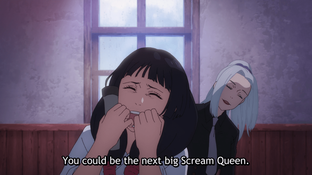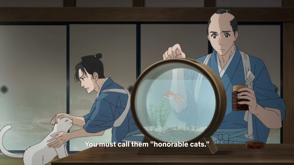WOW. Honestly, I shouldn’t be that surprised that Kinema Citrus (of Made in Abyss and Revue Starlight fame) has made such beautiful anime yet again, but that was a gorgeous episode! In particular, I love the coding going on here between shadow and light: Miyo is in shadow virtually the entire episode, with the exception of when she is near her dead mother’s cherry tree. When she leaves the oppressive home of her youth, she steps out from the darkness of its eaves, but yet remains cast in shade, walking in the looming shadows of walls and overhangs. She crosses onto the property of her fiancé, however, her face is momentarily lit, anticipating the light that will soon enter her life. And then finally, as she raises her head to lock eyes with her betrothed for the first time, her face is fully lit and the background explodes into white, consuming the hopelessness that has stalked her for so long and promising brightness to come. Stunning! This one is at the top of my list.