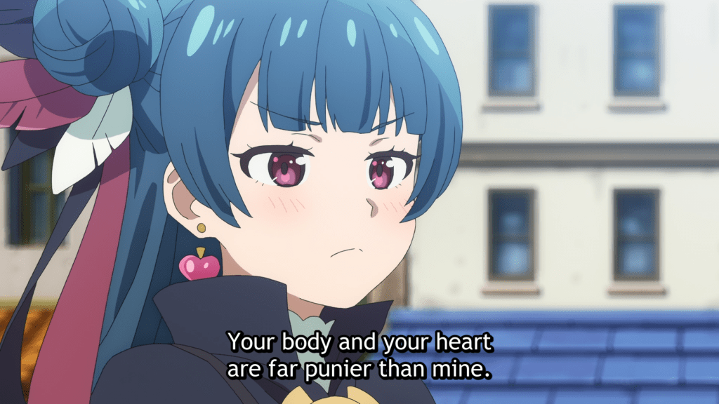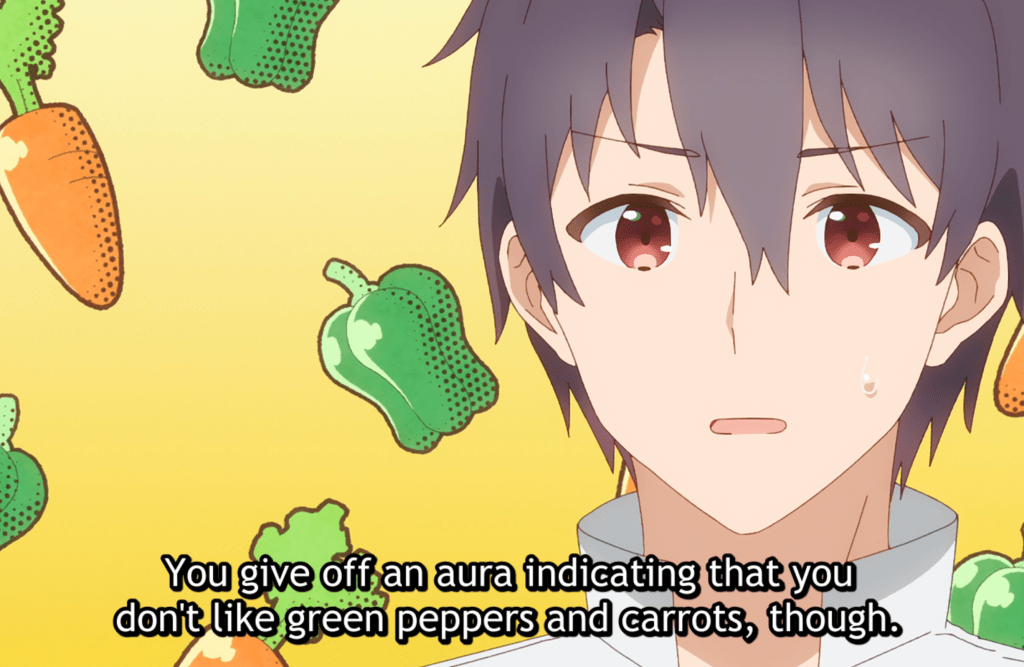 I watched the dub, which was available before the sub, and it’s been so many years since I’ve watched dubbed that I didn’t super enjoy having an English voiceover, but I did think the dub was good. The animation was also nice and I really liked the outfits of Emily and Sato. The opening song will be one that’s added to my list of songs for jamming to, and left a strong impression on me, encouraging me to keep watching despite not initially being sold on the bean sprouts (I’m not a fan of the food in general). Ha! Even if this episode is not among my favorites from this season, I do want to watch the next episode because I’m curious to see if the other dungeons that Sato visits will have different vegetables that are dropped. Ha!