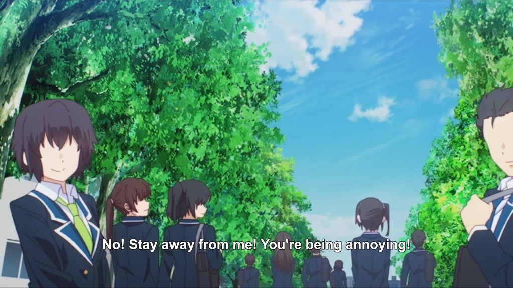 This episode strongly implies that Aika is going to turn out to be a tsundere who didn’t actually hate Wataru’s attention nearly as much as she indicated. The path forward from here probably involves Wataru and Aika working through their misunderstandings and mistakes in comedic fashion. And you know, I think I’m on board with that (at least enough to give the show a couple more episodes). This is yet another high school romcom, and it has no qualities that particularly distinguish it from the rest of its genre, but it does its thing well enough to be mildly enjoyable.