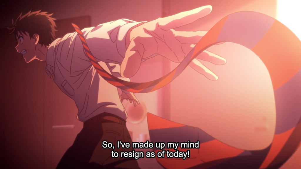 One of the more quirky offerings this season, with the exception of the Vending Machine isekai. (Never thought I would ever say those words together, but here we are) I enjoyed watching this one! The fact that we have this man-sized cat silently taking care of his hapless yet hard working owner is a pretty cute premise. And the fact that we might have a bit of an office romance that could come into play for our office lady and her prodigious feline makes this all the more intriguing of a watch. Can these shenanigans last for an entire series? We shall see, but I’m interested enough to see how this goes. Speaking of “Go”, this is another GoHands production, and when I first saw the opening title sequence, my thoughts were like “Oh here we go AGAIN, another The Girl I Like Like Lost Her Glasses situation”, but thankfully, GoHands sat on their hands and restrained themselves.