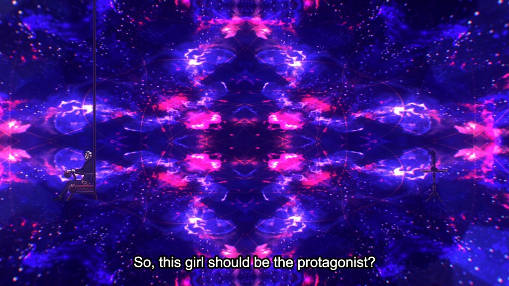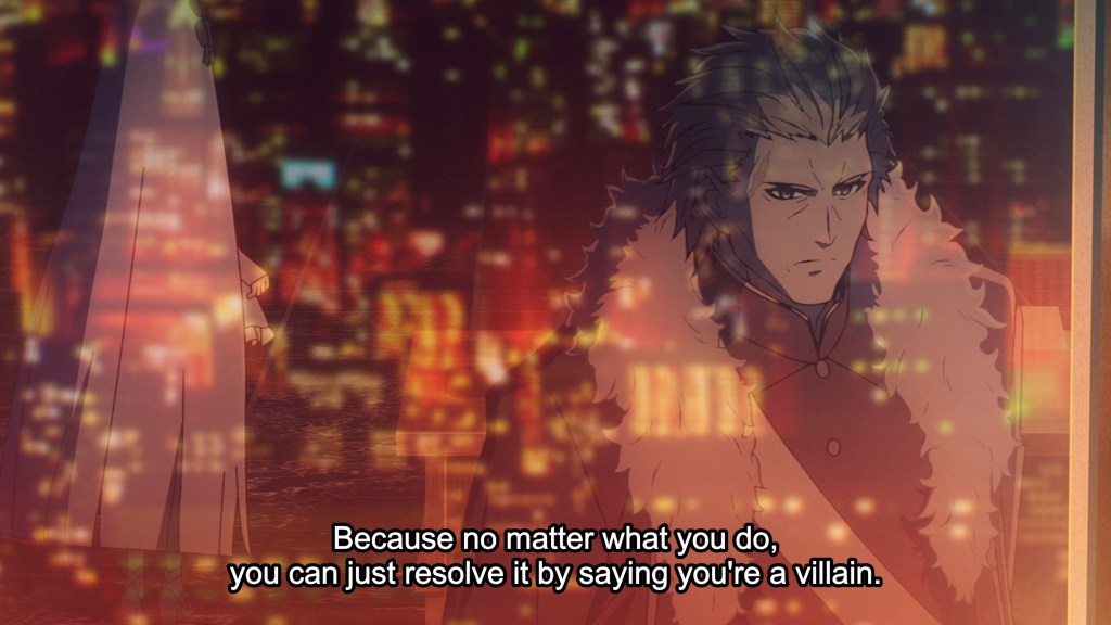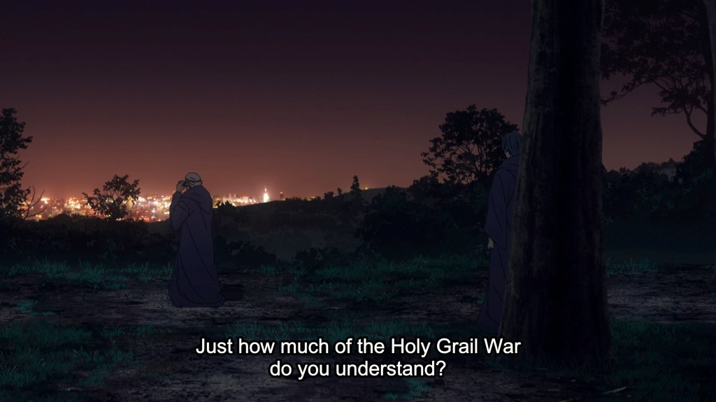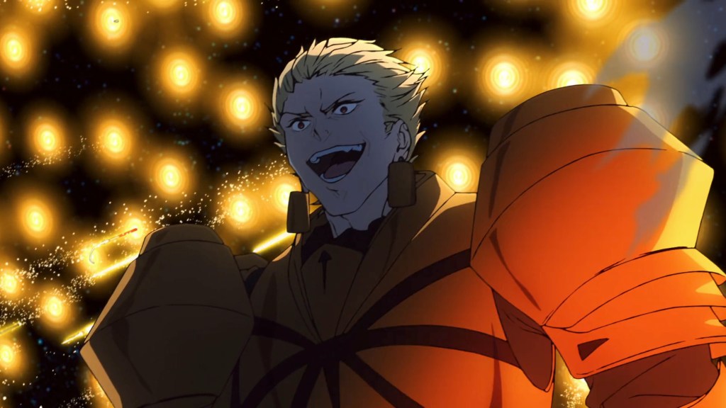 The summoning circle glows as a man who’s waited his whole life for this moment calls forth a Servant. He’s high on anticipation as his entire purpose in life, to be a Master, finally comes to fruition. Only, it doesn’t. Because the Servant he calls is Gilgamesh and, well, Gil doesn’t really take to the arrogant sod. Cue a subservient, ultra-polite little girl who knows exactly what to say to get on the King of Heroes’ good side. And so it begins, the next Holy Grail War. Cut to a lengthy info dump by a character we’re meant to hate anyway (good strategy, giving him the tedious task of recapping the franchise’s core premises), but who proves to have a few tricks up his sleeve, and a few twists in mind for the next War: not only will it take place in the “young” nation of America (how scandalous for a conflict so deeply rooted in tradition!), but it will also be a Fake War, in that fundamental rules of the game have been sublimated. For instance, this iteration will have only six Servants and Masters rather than the usual seven, and there will be no Saber, who routinely serves as the moral cornerstone among the players. As the story unfolds, further bending and breaking of the rules promises new intrigues, including a rival worthy of Gilgamesh’s notice, the (near?) divine being, Enkidu, and their canine(!) Master. There are a couple of accidental Masters as well, which always livens things up, including the blissful idiot Flat, a student of El-Melloi’s who may just be more insane that his Berserker Servant, and a tiny sick girl who it seems somehow became paired with a great evil overshadowing all of existence that is poised to join the fray. There is also a shady government agency pulling the strings (or so they believe), and a well-informed Mage faction awaiting the perfect time to yank those strings back under their control and transform the Fake War into a real one. How they plan on doing this is not clear, but their schemes may be scuppered anyhow by the young woman who, in the after-credits scene, declares that she will not be who they want her to be—she will not be a Master.