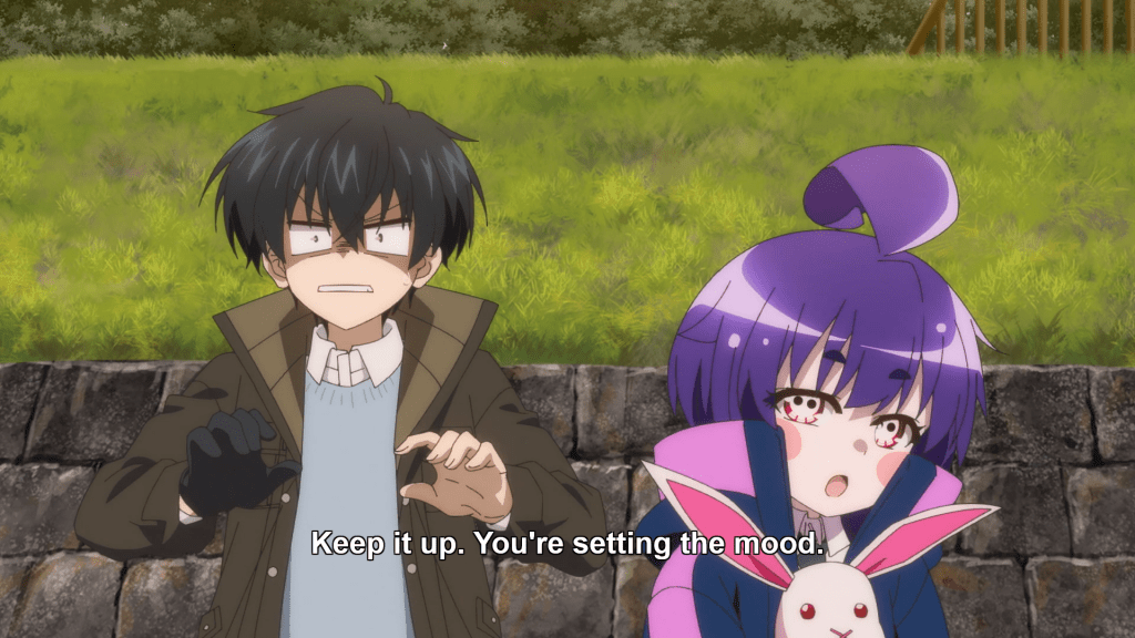 The newest supernatural/exorcist anime series has some things going for it, but it feels pieced together and has an odd tone. It all begins and ends with middle-schooler Yayoi. Having reviewed volume one of the manga, I was prepared for this unusual lead character whose design conveys a duality: she has a cute side, conveyed by her colorful clothing and dry sense of humor; and she acts in a way that is verging on evil, represented by her eyes, which look like skulls. But despite these unusual characteristics, Yayoi isn’t a very memorable character. Her voice is soft and she’s not terribly likable. We’re supposed to find her compelling, but I don’t feel any type of strong emotion toward her. The same can be said about the responsible Keitaro and the kind Eiko. They’re all just kind of there. The bloody and violent spirit scenes are also muted, neither exciting nor scary. As evidenced by the shift from a brighter-colored palette to grainier animation during such scenes, they’re supposed to contrast against the “regular life” parts of the story, which are somewhat funny but aren’t particularly involving. And because you’ve got these two tones that don’t stand out against one another as much as they should—the scary scenes aren’t frightening enough and the slice-of-life ones aren’t warm enough—you end up with a series that’s odd and a little boring. And while it’s not so soporific as another recent exorcist series, In/Spectre, Dark Gathering is definitely not entertaining enough to keep me tuning in.