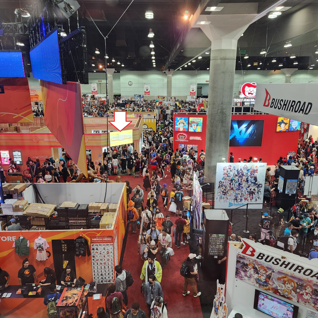 As usual, the Exhibit Hall floor was a shoulder-to-shoulder, no-personal-space-here experience in trying to consume an overwhelming amount of input. Displays. Merch. Cosers. Videos on jumbotrons. With so much to take in, there was no way to see or experience it all. Prioritize your checkpoints and complete primary objectives. Heading for the Smile Mart, I observed uniformed officers looking down from above, sweeping the crowd for operatives to apprehend. Best keep a low profile.