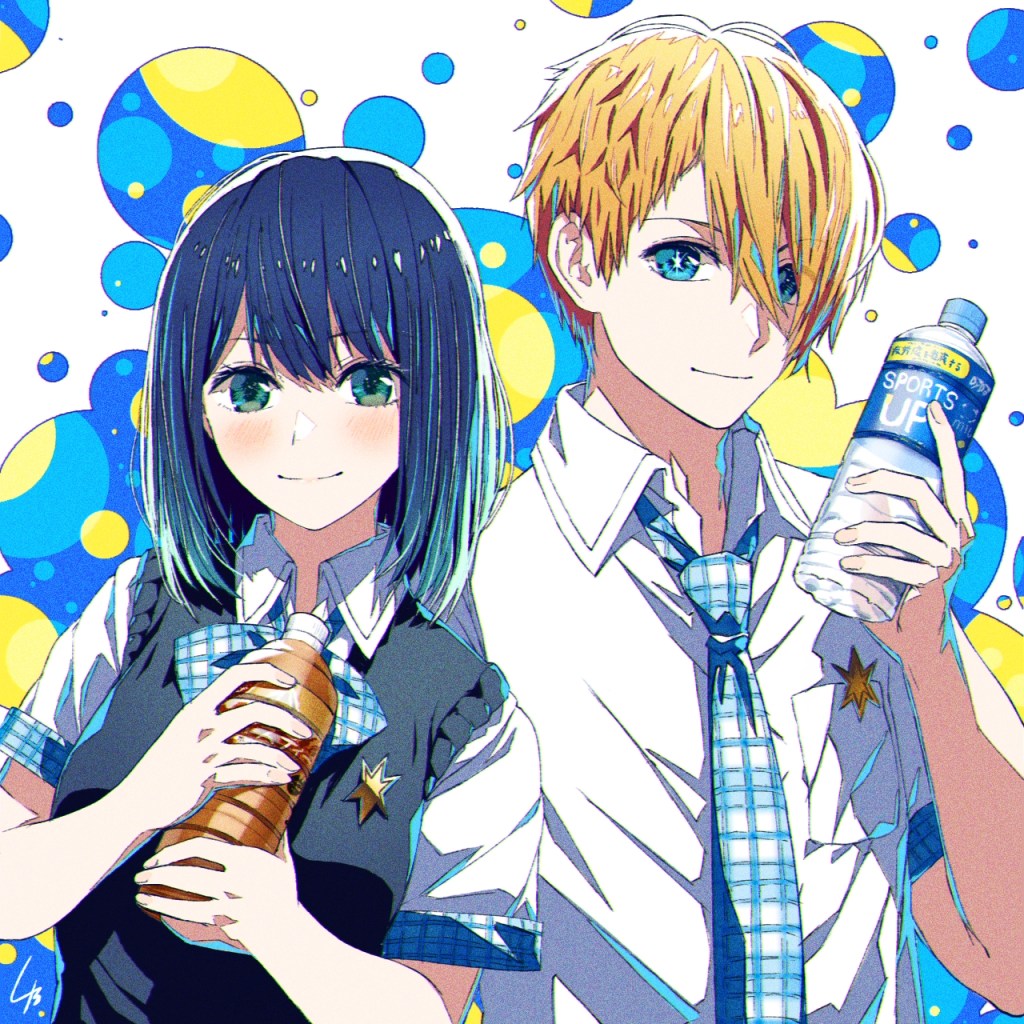 It’s been a long, hot summer here where I live (record-breaking even). But even if it’s not quite that hot in your neck of the woods, we’re here to remind you that you still need to drink plenty of water and keep hydrated! B-Komachi seems to want to send that message in these photos as well—as do a few others from Oshi no Ko!