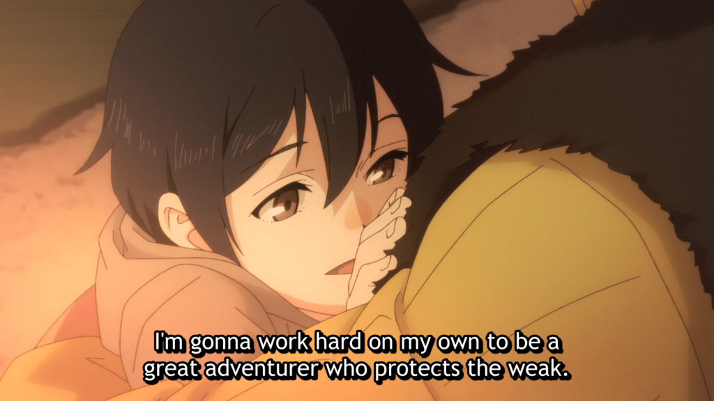 The opening scene, filled with screeching and a flashback in muted colors, feels straight out of your usual isekai, making it seem that this series will be regular fantasy fare. But then the soundtrack plays a tune that sounds exactly as if it’s from the scene in Fellowship of the Ring where Gandalf is approaching the Shire for Bilbo’s birthday, complete with that lovely flute. From there on out, episode one shows that this series is as much about the heart as it is the sword, with Bel demonstrating his kind character to villagers and his daughter alike, and Ange constantly being delayed from visiting the father that she adores. What a lovely, lovely episode, ending with a narration that’ll have you on the verge of tears. Wait, that was just me? Ahem. Anyway, the animation is admittedly mediocre (the action scenes are terribly meh), but the beauty of the scenery makes up for it. The artwork for the pastoral setting in the series is special, and the character designs are interesting too, conveying a sense of realism and uniqueness that fits with a medieval-type fantasy world. The fact that pixies and spirits are brought up right up front, and a tree-like monster attacks the village later, lets us know that the magic of this world leans toward that of the British Isles, and I’m all aboard for that. In fact, I’m all aboard when it comes to this series as a whole if it remains just as heartwarming as it was in episode one while finding a story to keep me entertained. At the very least, give me more of that flute theme, please!