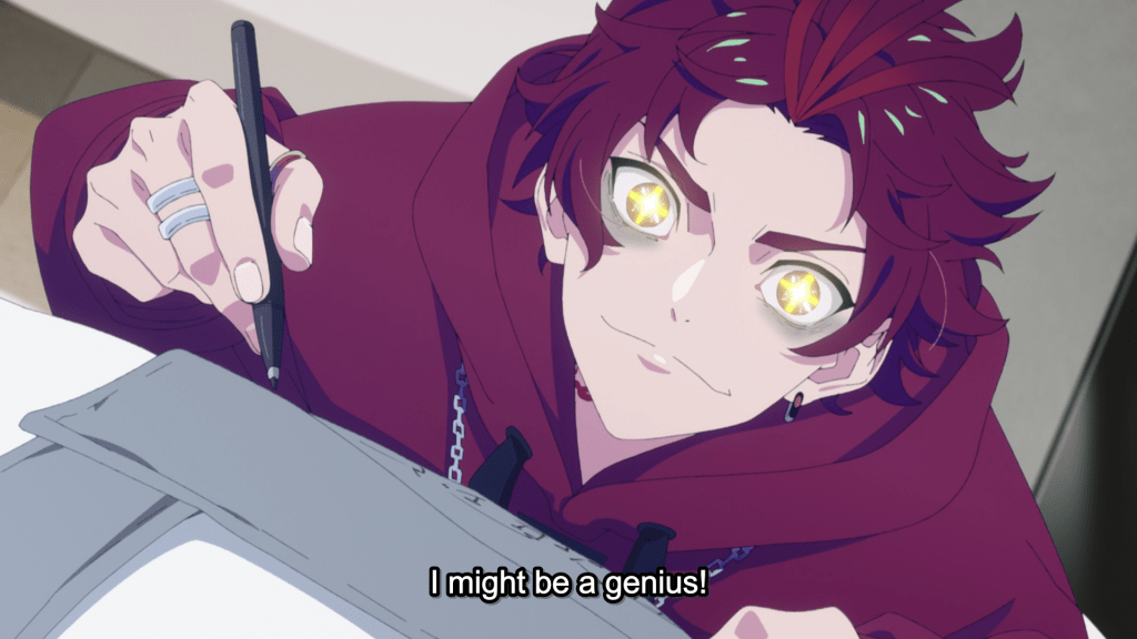 Well, this boys’ idol anime is not what I was expecting! The first thing I thought of within the opening minutes was Cyberpunk: Edgerunners (but without the gruesome violence and eroticism) meets Ya Boy Kongming, where the cast are edgy punk rappers. Not a bad mashup! But the thing that won me over entirely is that several of my all-time favorite VAs are among the phantom rappers! To say that I was squealing when I found out that Ayumu Murase and Ryouta Takeuchi, the voices of Hinata and Ushijima from Haikyuu!!, as well as Natsuki Hanae (Tanjiro from Demon Slayer) are all rappers in this series, is an understatement! While I enjoyed this first episode and the rapping with the use of illusions, I am very much here to hear some of my favorite characters rap in this anime. The animation itself is good and I am also very interested in all the rap groups introduced, but the voice actors have me already anticipating next week’s episode! Beyond the voice acting, I will mention that the concept of phantometal and how it directly affects a person’s DNA is also extremely interesting. I am very curious about whether it affects any of the users, and if it does, how exactly it affects them, because it appears that all the rappers use phantometal to enhance their performances. Overall, I have no idea if I can recommend this because of my own bias (my deep love of Haikyu!!), but I will be tuning in to see what unfolds next for BAE, especially after that alarming cliffhanger at the end!