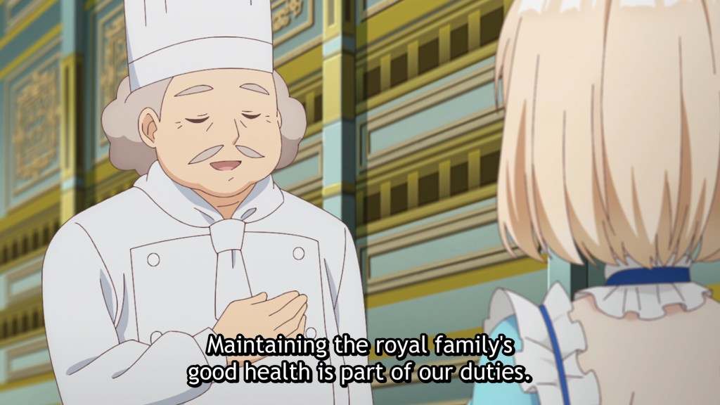 Similarly, the princess begins to remember a particular annoying civil servant who was always nagging about reducing expenditures, but whom she now realizes had the good of the empire at heart, just as the chef had her good in mind with those veg. Now able to appreciate his efforts, the princess seeks out the official in order to partner with him—someone she had previously mocked and dismissed. Likewise, her attitude toward the klutzy maid Anne is also transformed as she embraces with joy the girl she used to hit and kick practically on a daily basis. Mia has a new sense of value for others, and is able to see their hearts, their intent, and where they fit in the bigger picture, and not just how they fall short in their service to her.