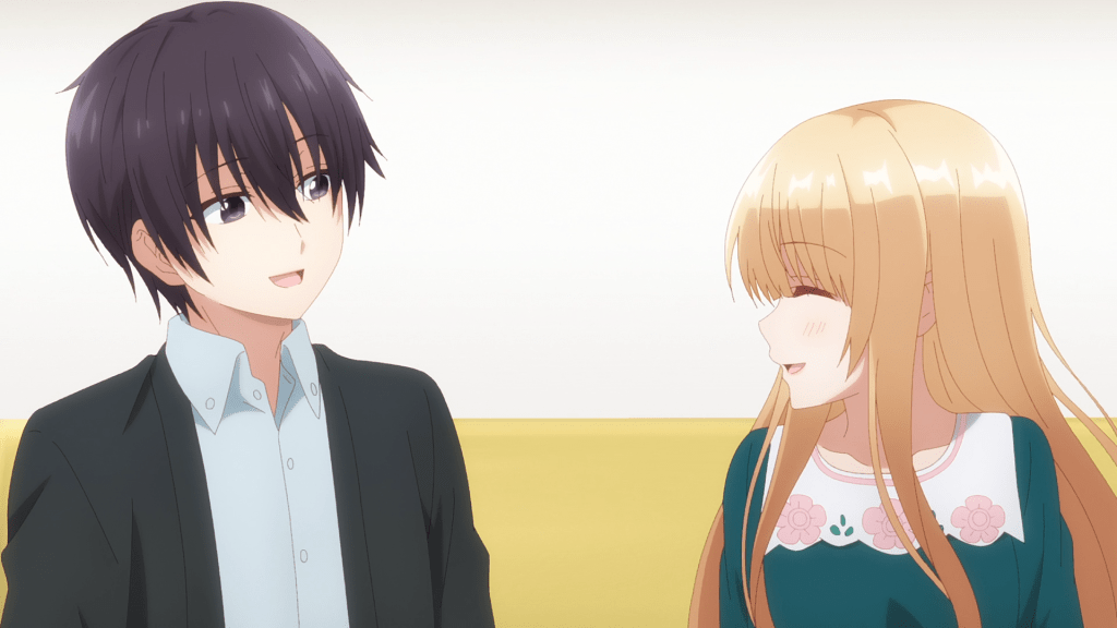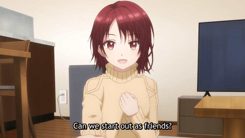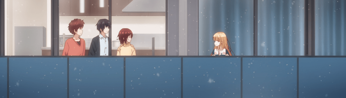 But wait, there’s more! As in more people. In episode four, the Christmas Eve party of three becomes a party of four when Itsuki and Chitose spot Mahiru outside on her balcony. Connecting the dots, they realize that she’s not only Amane’s neighbor but someone dear to him whom he had previously purchased a stuffed animal for. The friendly duo invites Mahiru to their party and begins the process of getting to know her.