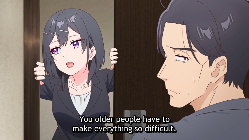 Phew! That was a lot to cram into the premiere, which is probably why this is a double-length episode. I’m usually pretty skeptical about these long premieres, but in this case, the length is warranted in order to get to the major genre shift as laid-back isekai is mashed up with superpowers, urban fantasy, and likely a dash of conspiracy too. This genre hybridity is the strongest point of originality that this series has to offer, and it’s enough to distinguish it from the reams of other isekai this season (and every season!). There’s some good writing and editing here, as this episode adapts pretty much the entire first volume and the first few chapters of the second volume of the manga, without missing any vital bits and instead resolving the inconsistent pacing and lack of narrative focus in the source material. The animation is quite nice, on the stronger end of the spectrum for isekai specialists Silver Link, with some decent layouts shining through now and then and good backgrounds, particularly for the parts set in Tokyo. The gentle humor gives it warmth, while having an older protagonist makes for a nice change. I’ll admit, I dropped the manga after two volumes due to the pacing problems and more importantly, the extremely lazy and mildly disturbing characterization of the female characters, including the underage neighbor girl, and I can see hints of what caused me concern back then peeking through here (the girl’s crazy eye of jealousy and blushing around Sasaki; agent Hoshizaki’s OTT-ness), but I’ll be giving this adaptation a couple more episodes to see how the writers handle this other glaring weakness of the manga. After all, they resolved the pacing issues, so they may inject the female supporting characters with a bit more multi-dimensionality too (and edit out some of the cringe). We can hope, at least! Final verdict: I’ll give this until episode 4, when the anime should have moved beyond where I got with the manga.