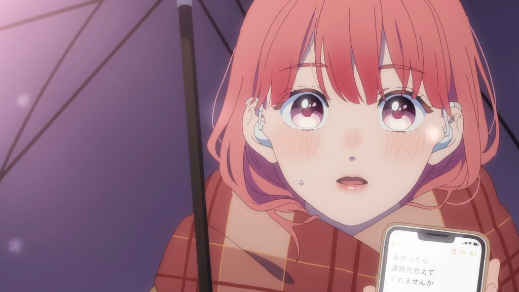 Let me answer my own question from the recap with a resounding “Yes! Yes, this is the beginning of a beautiful romance.” What a gorgeous, tender, delightful premiere episode! There is much to praise here—it really is a stunning episode—but my colleagues have done a great job of covering these things, so let me focus instead on the two themes that really stood out for me: the theme of perspective or the worlds we each live in, and of language and how it is so much more than merely words strung together. The episode is titled “Yuki’s World” with Yuki being both our female lead and also one of the first things she comments on: snow. “Is love like the snow? Does it arrive silently, with no fanfare? Will it fall from the cloudy skies above and color the world with its hue?” Is her world one wrapped in snow, muted, as it were, by her inability to hear sound? Does this layer of snow (her deafness) drain the color from her life even if ever so slightly, like a wintry landscape, and yet infuse it with a beauty all its own? And will love be the experience, the quality that fills her world with new color? All these questions are raised with the first line of dialogue, which is repeated again at the beginning of the second half of the episode, with the answer coming in its full glory in the climax near the end. (What a powerful framing device!) And in between, we begin to see Yuki’s world, and how it differs from that of those around her. The sound design and color design subtly queue these distinctions, with her world brightening at key moments, the sound dulling at others, or a score of non-diegetic orchestral swells flooding in as the episode alternately charts Yuki’s affective experience, or watches from outside, drawing us in and pulling us back out of her inner world.