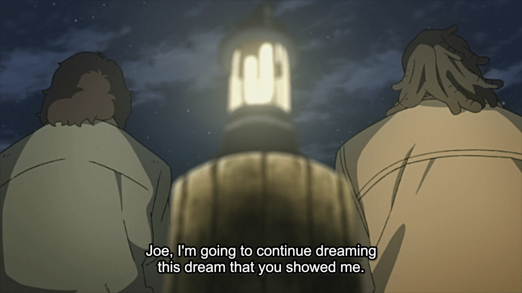 Tragically, Chief passes away in his sleep and once again, Joe loses a crucial friend in his life. But this time, instead of going into a deep depression, Joe chooses to take his friend’s advice instead of ignoring it, as he did with Nanbu. Joe was there the day before Chief died and they agreed to see their dreams come to pass, and so Joe feels that he is keeping his friend’s wishes by moving forward.