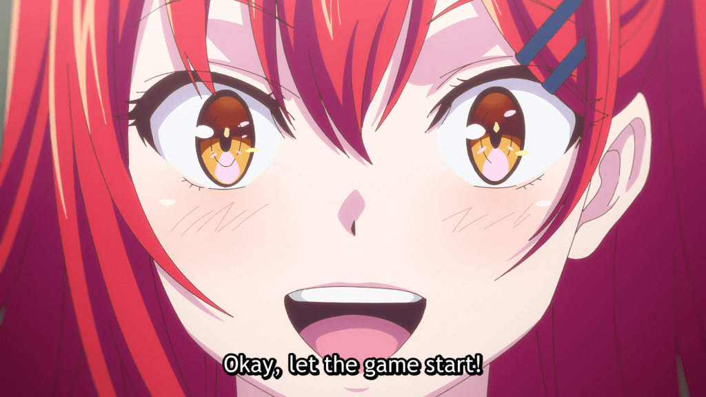 That comparison to Urusei Yatsura, a series otherwise very different in tone and story, extends to the fanservice. I’m not opposed to series featuring fanservice, but I am when it feels out of place and a diversion from the story. There’s just a bit here in this opening episode, but one negative from the two volumes of the light novel is that the ecchi scenes there do exactly what I oppose—they take away from what’s otherwise a really fun time. The other negative from the LN also reveals itself a bit here in episode one where, as a viewer, I’m not really sure if the characters and game elements are smart or if we’re just told that they’re smart and supposed to play along. With the novels, I’ve sometimes felt the former to be true and sometimes the latter; this is something to keep an eye on as the series progresses and which may ultimately affect one’s enjoyment of it.