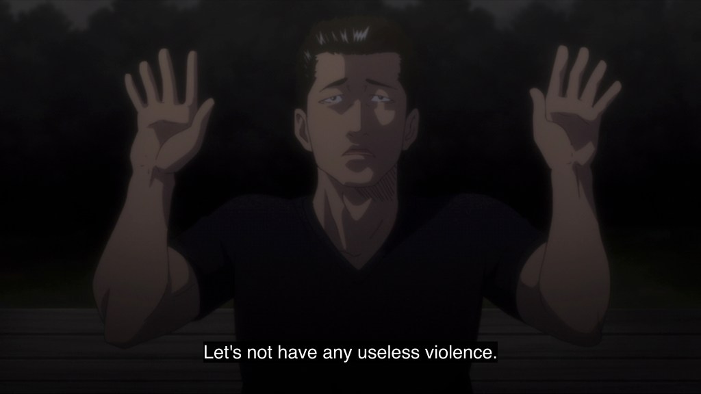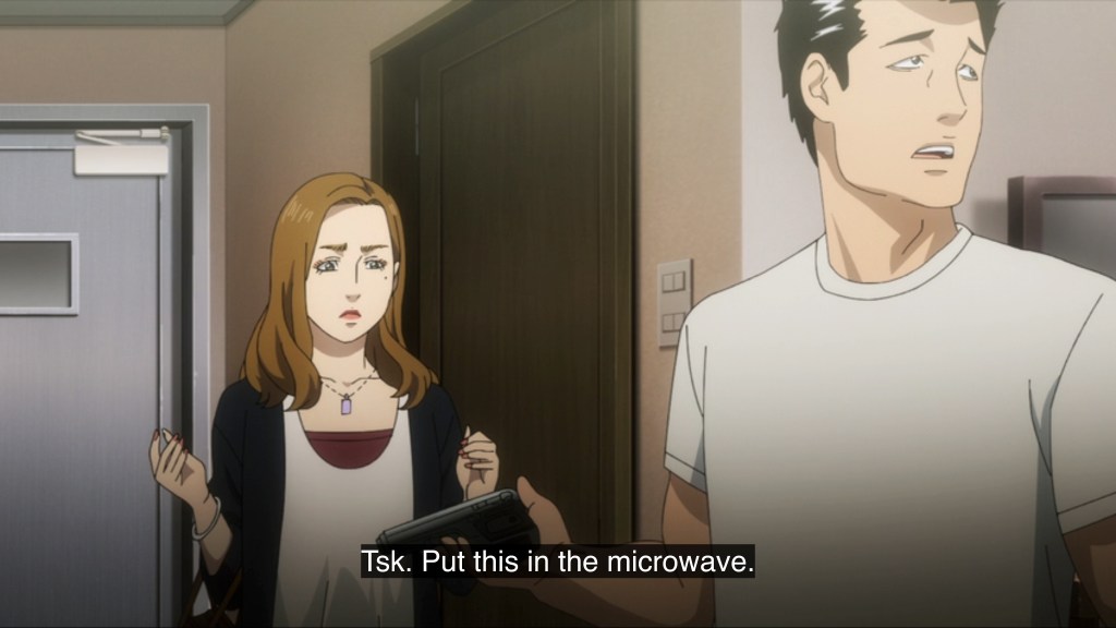 I said “it remains to be seen,” but that’s assuming that the lighting in this episode brightens up enough for viewers to actually be able to see what is going on in future episodes. I get wanting to go for the noir vibe—something underlined by the jazzy soundtrack and tendency to set all the action at night—but at least drop a few streetlights or glowing smartphone screens in there, Tezuka Productions! I was squinting my way through this one. I expected to also be laughing, or at least chuckling my way through it too, but sadly Fable’s monotone delivery effectively drained the humor from the jokes. The premise is a lot funnier than the execution so far. This is partly because the characters themselves are pretty flat. There’s an attempt to give the “siblings” an appropriately zingy banter dynamic, but it doesn’t really take. At least there’s no threat of pseudo-incest here though, as the two have absolutely zero chemistry. And, well, that’s about it. Nothing particularly egregious, but nothing to hook me for a second episode either. Only the fact that I subscribed to Disney+ for a month to watch the anime premieres will give this series a fighting chance at getting me to sit down in front of it again—after all, I gotta get my money’s worth. Not all of us are professional hitmen with bags full of cash.