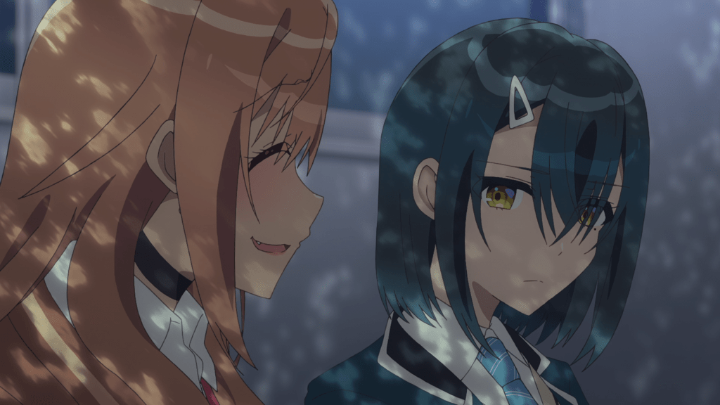 Okay, so it looks as though we’re having another “Behind the Scenes” type of show in the same vein as last year’s blockbuster Oshi no Ko. Except this time, instead of reincarnated twins following in their late idol mom’s footsteps, we have two high school girls who put on a mask for the public but are completely different in person, and of course, they’re forced into circumstances that have them working together and revealing their true selves to each other. It very much reminds me of a Horimiya or for you old anime fans out there, His and Her Circumstances. According to the source material, this looks to be a yuri or Girl’s Love series, so eventually we might see some romance develop between these two, and odds are good that their relationship will go in that direction with subsequent episodes. It’s the old dynamic that we’ve seen done quite a few times in anime: once bitter rivals soon come to like, and later love, each other. The true odd couple. Though admittedly, I like how they flipped the script, having Sato’s “real self” being a gyaru and her public persona being quieter and more demure. The one frustrating thing that I just couldn’t shake off during this one was the fact that Sato did not immediately recognize Yuhi when they met each other in the classroom, and vice versa. I mean, you LITERALLY have this girl’s picture in front of you, and Yuhi does not change her appearance in any noticeable way. Talk about asking us to suspend disbelief! Production-wise, the animation feels kinda…standard. Nothing special here, and if we’re being honest, considering the simplistic nature of the show, I wouldn’t expect anything jaw-dropping. The music sounds like something from a video game—nothing inspirational or uplifting here.