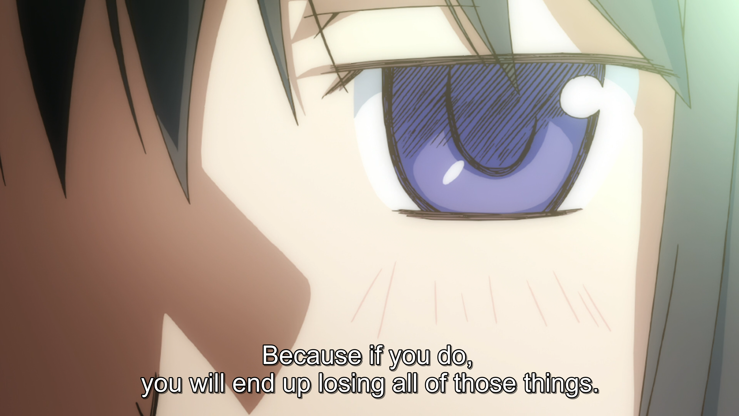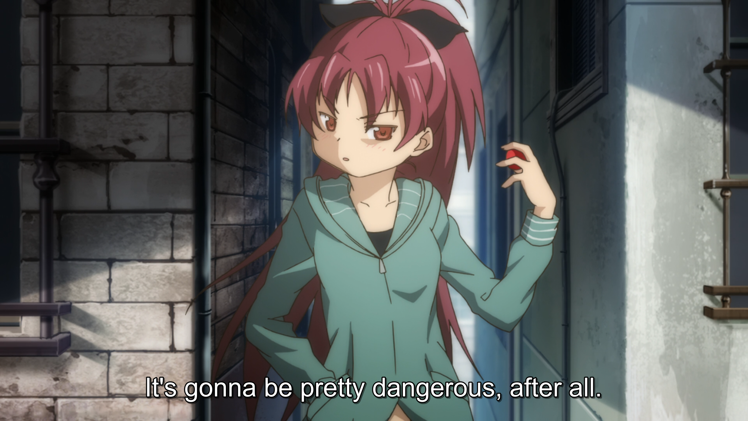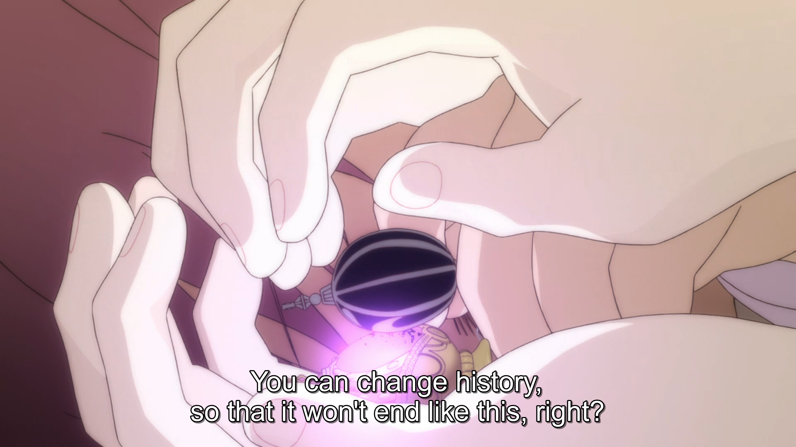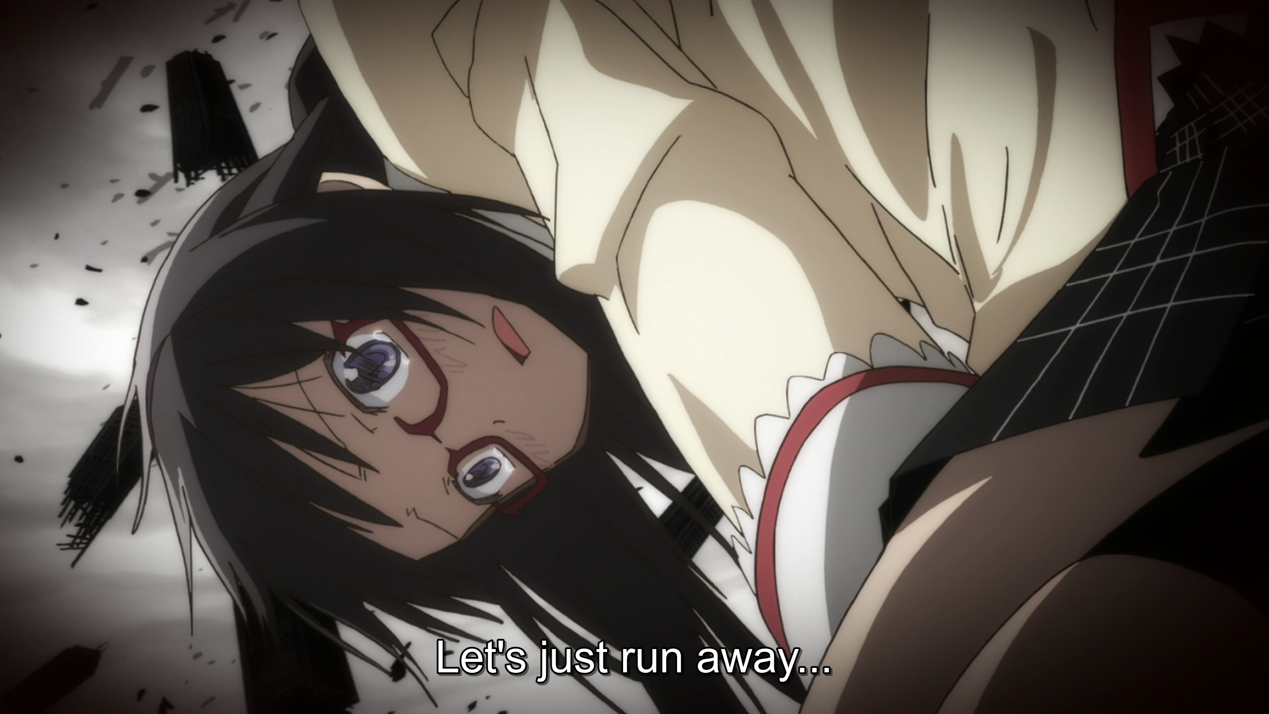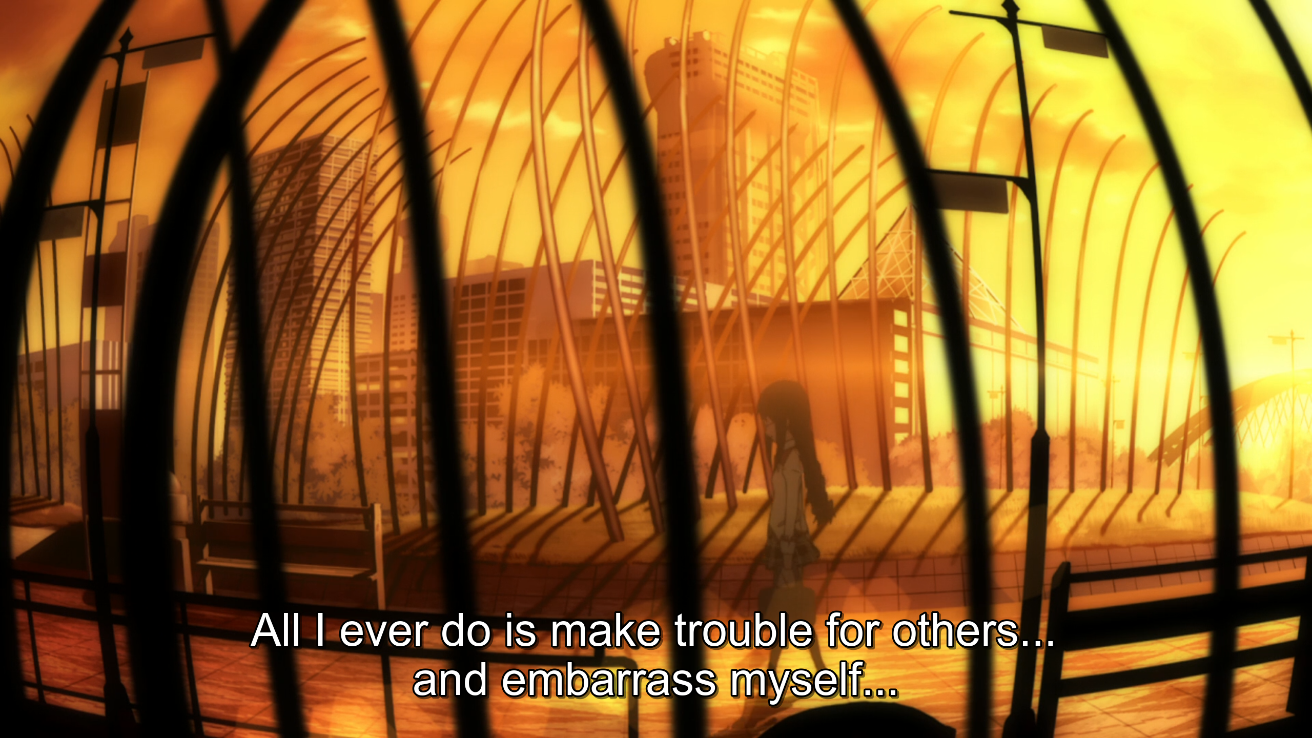 In episode ten, we see that, originally, Homura was a weak and insecure girl in dire need of a savior. Madoka fulfilled that role for her, saving Homura not just from physical harm when she found her cornered in a witch’s labyrinth, but from her insecurity as well, by becoming her true friend. Then, Homura goes on to witness the greatest tragedy she could imagine. Her only friend saves her again, but this time at the cost of her own life. Madoka made this heroic sacrifice gladly, but Homura could not receive it so. It was too bitter a sacrifice to lose her friend.