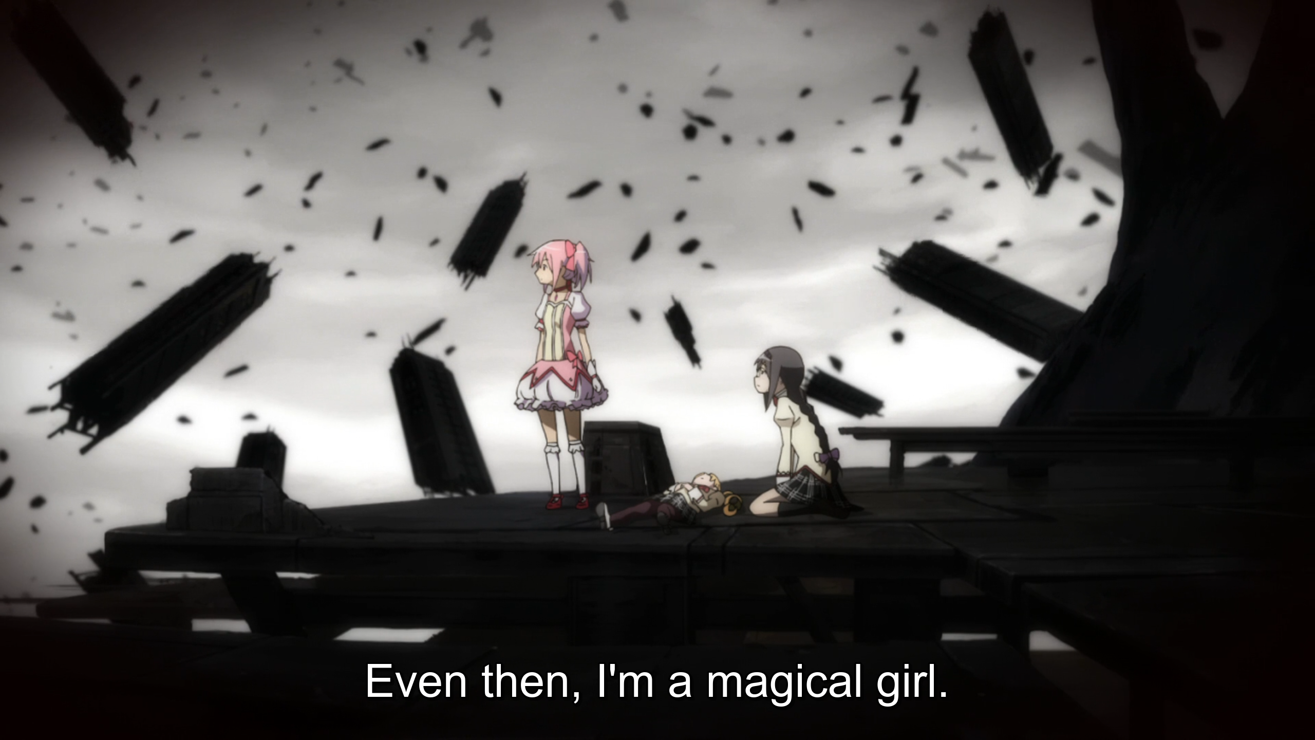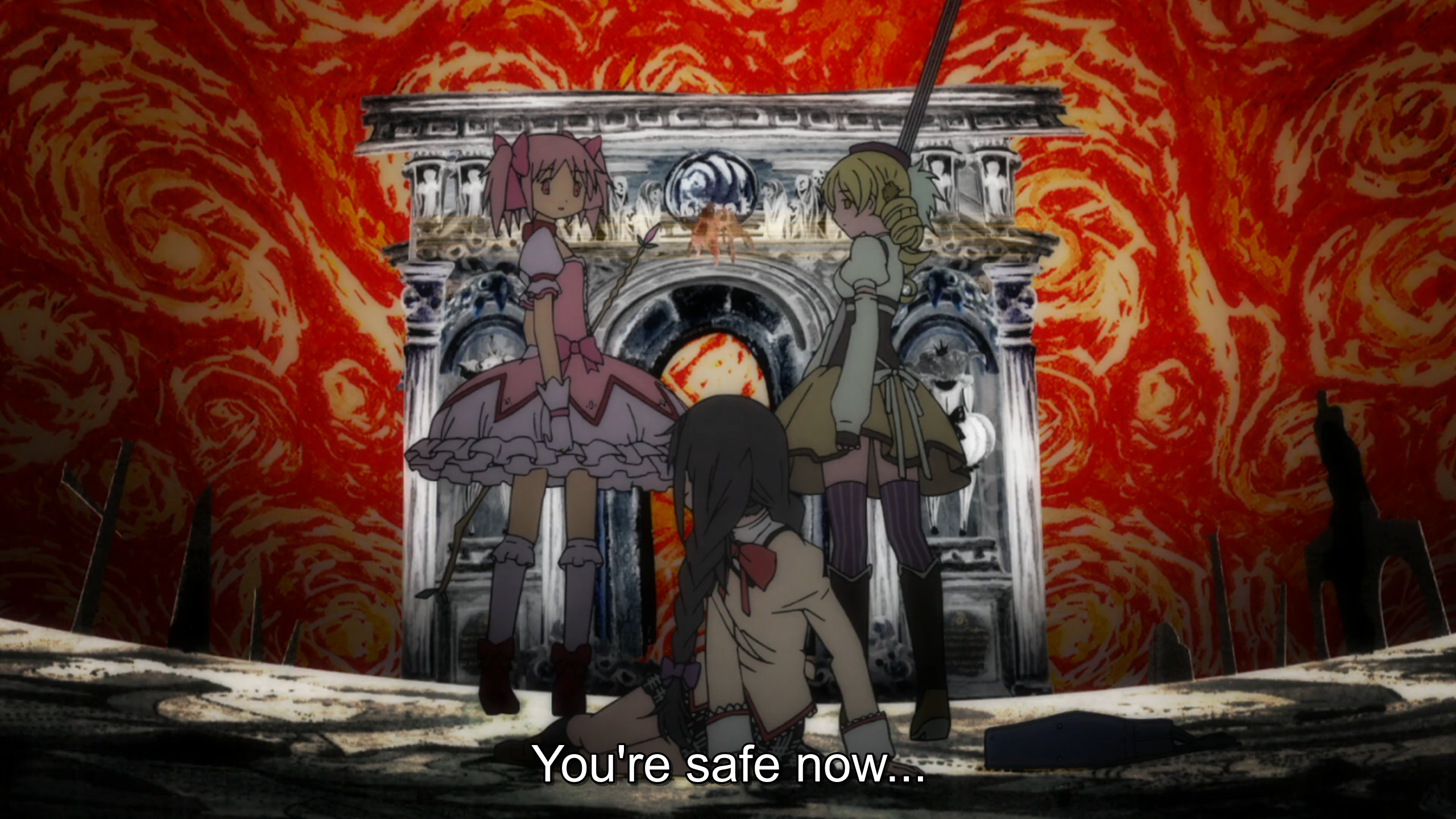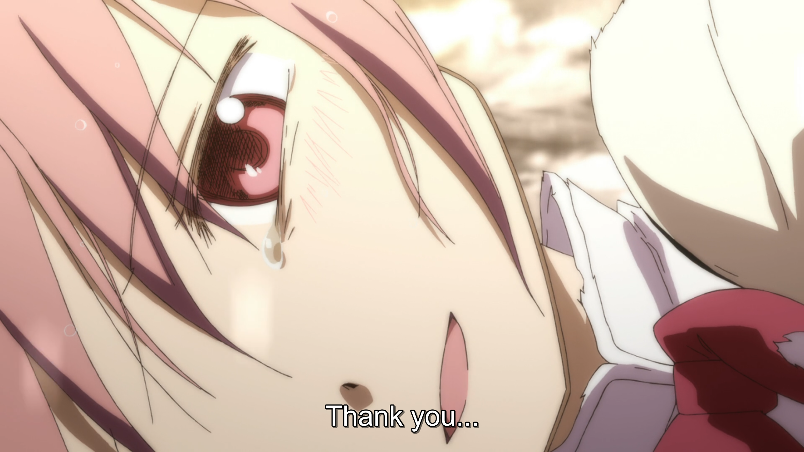 There’s still a long road of suffering ahead for Homura, but I’d argue that it’s at this very moment that her wish has been redeemed. The way Madoka cleanses Homura’s soul gem and justifies her wish foreshadows Madoka’s ultimate act in episode twelve.
