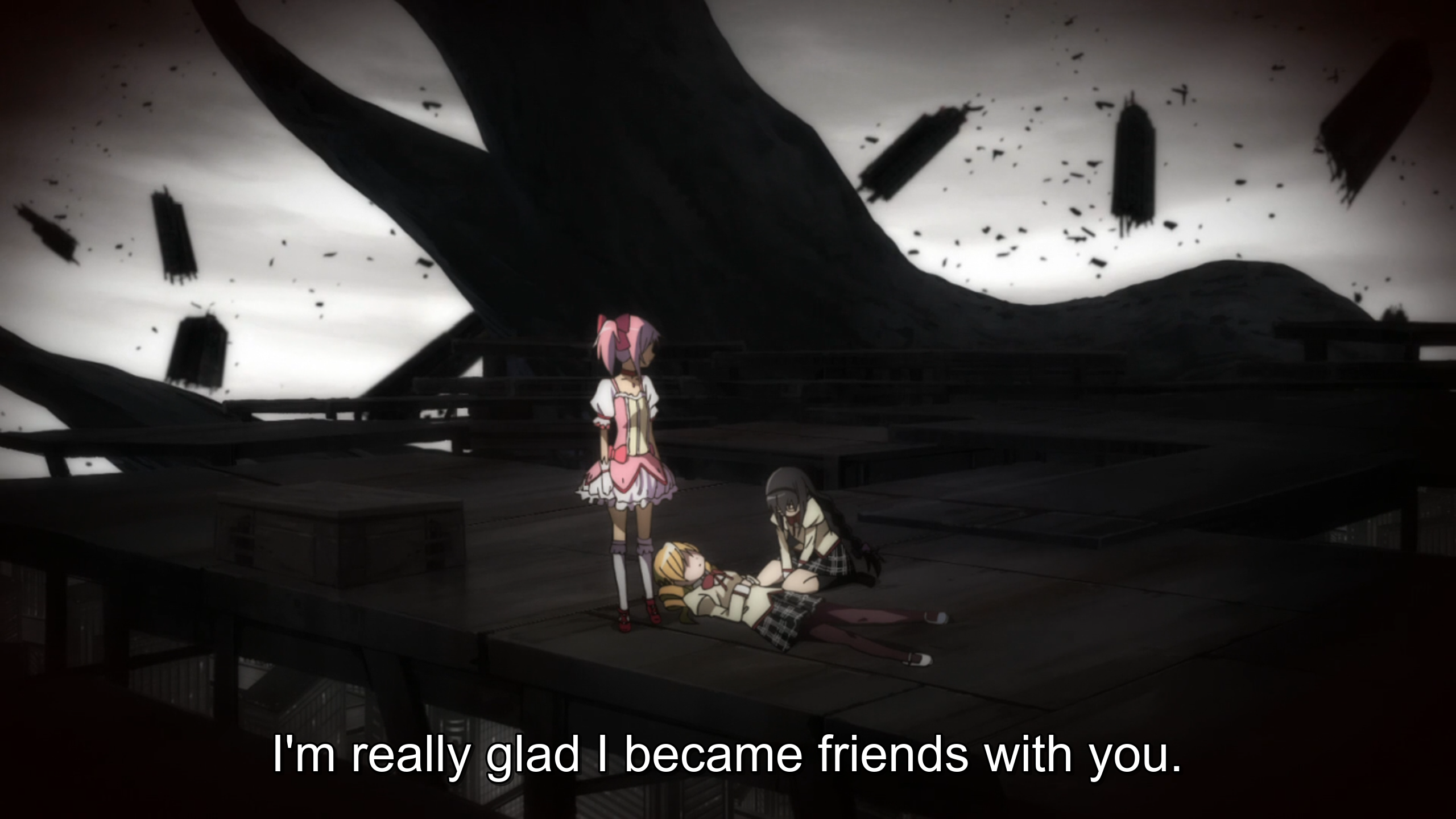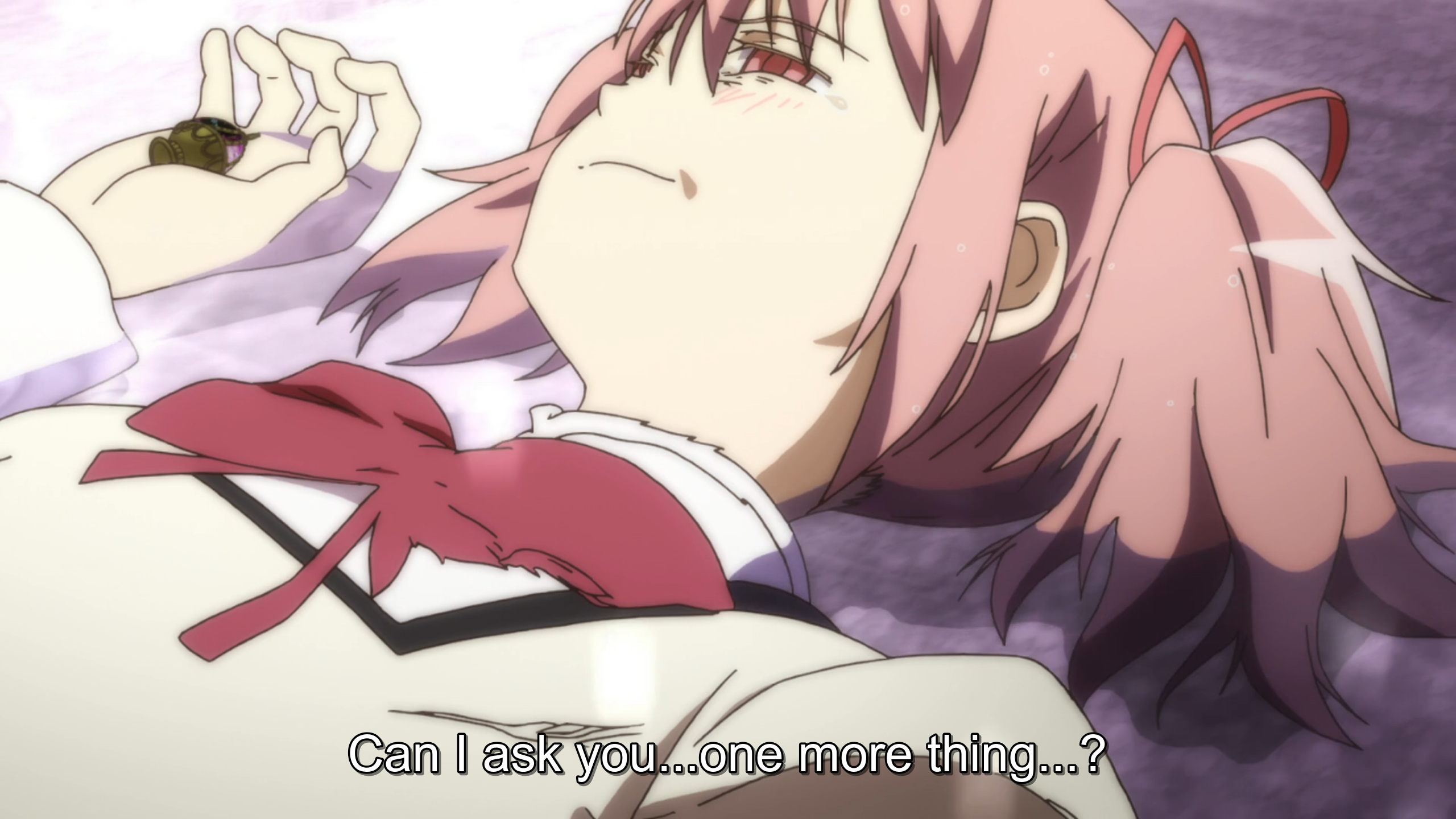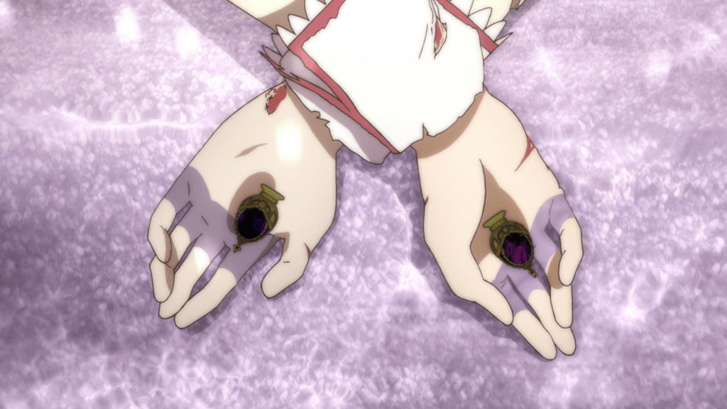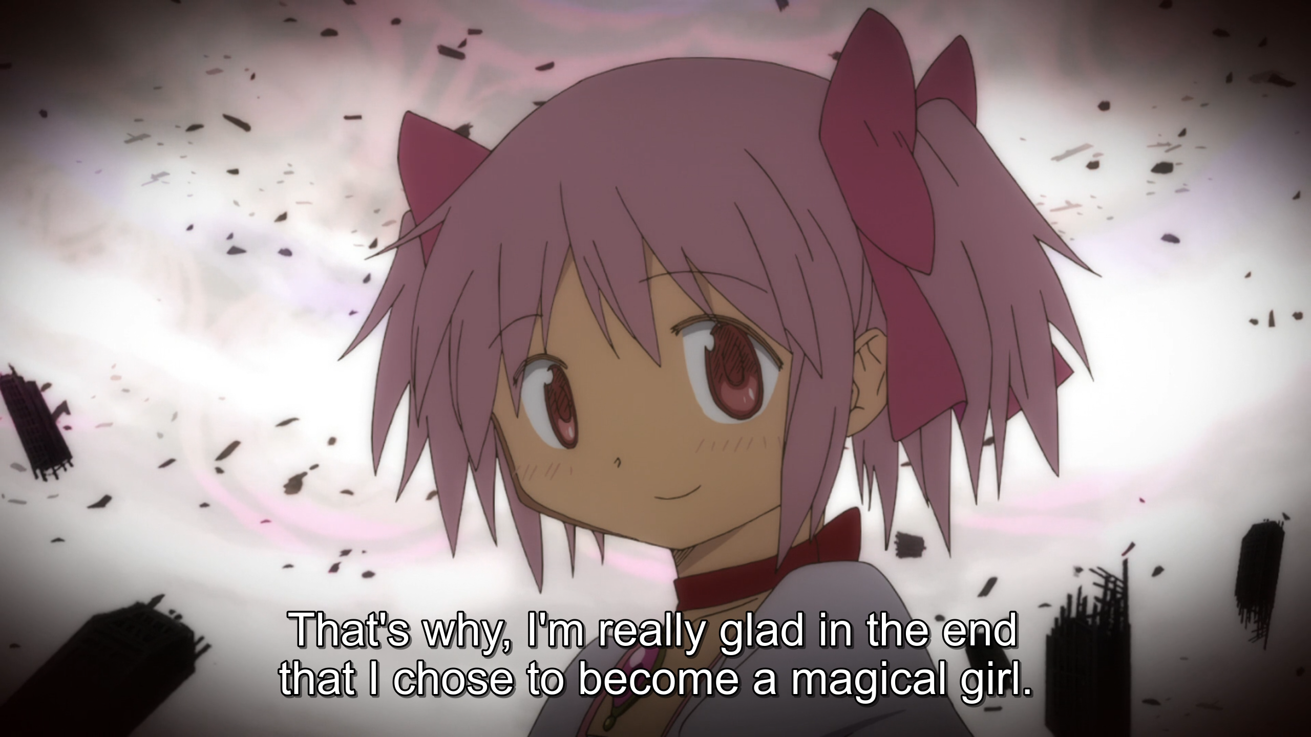 There’s still a long road of suffering ahead for Homura, but I’d argue that it’s at this very moment that her wish has been redeemed. The way Madoka cleanses Homura’s soul gem and justifies her wish foreshadows Madoka’s ultimate act in episode twelve.