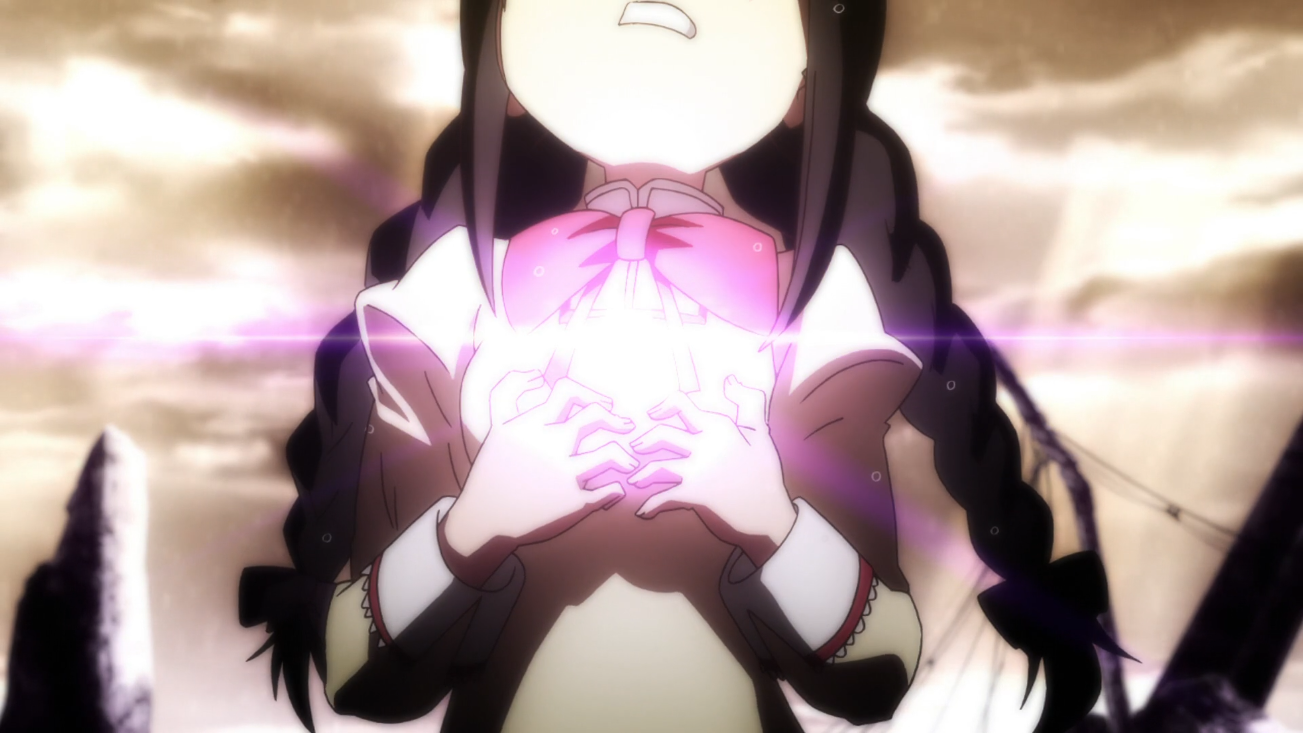 In this moment of grief, there is one thing she desires most: to redo her meeting with Madoka. She wants to be the one to carry the burden of being the protector. She sees Madoka as more valuable than herself and is willing to give her life for her. Through Kyubey’s contract, she acts out this desire by offering up her soul from between her clasped hands in exchange for her wish. She performs the same prayer of self-sacrifice that Kyouko did in the previous episode, but instead of it being the end of her struggle, it’s just the beginning.