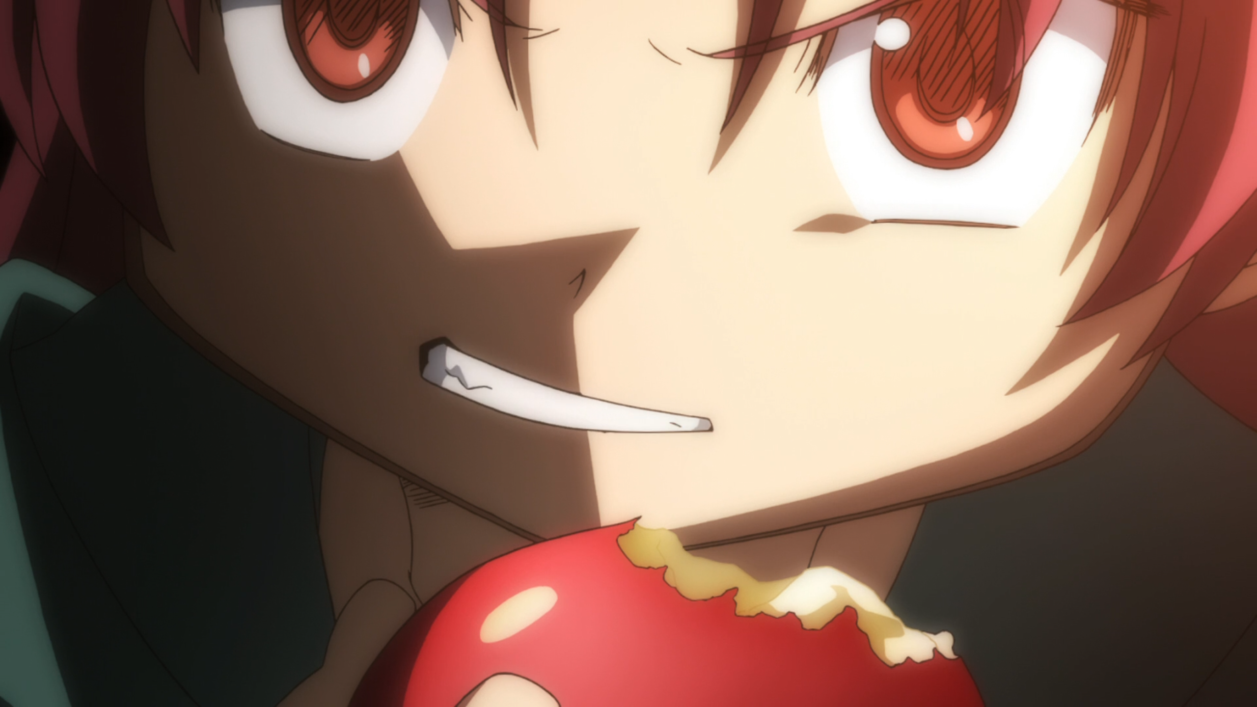 Up until now, Kyouko has been nothing but a thug who seems to be trying to corrupt Sayaka and undermine her good intentions. And what she has to say now seems no different. When she offers Sayaka an apple—literal forbidden fruit, since it was stolen—Kyouko seems to be playing the part of the snake in the Garden of Eden. It’s no surprise then, that Sayaka is suspicious of her, which becomes evident when we see Sayaka’s face reflected on the apple.