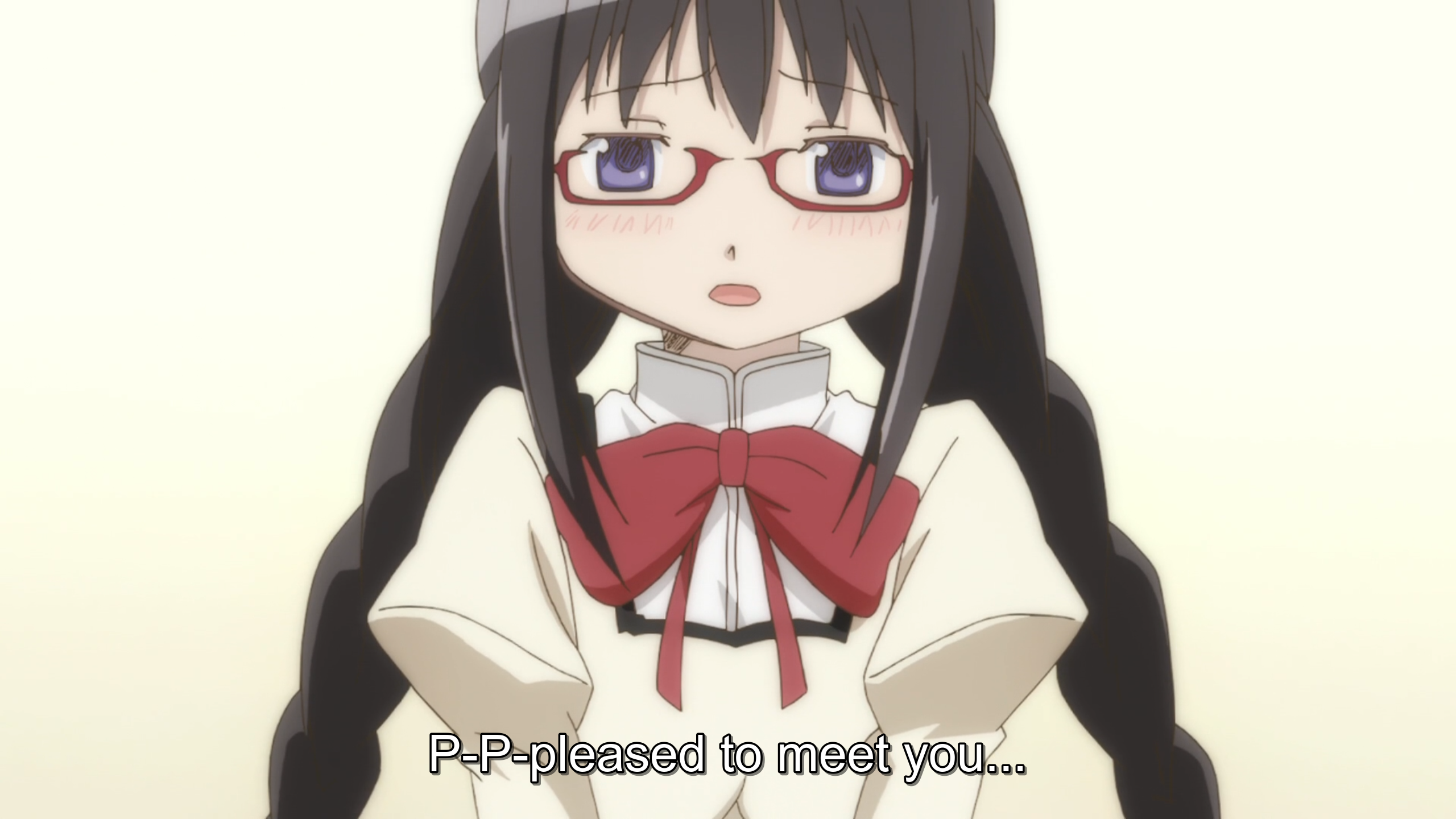But at this moment in the story, Homura doesn’t look like a hero. Toward the end of the episode, she seems to be a villainous figure who fights against the cute magical girl mascot, Kyubey. Her initially shadowy and mysterious vibe escalates to murderousness, as she hunts down and seems to torture the small, cute animal. For first-time viewers, this initial framing is often so convincing that it becomes difficult to see Homura in a positive light. She seems to be the evil counterpart to kind-hearted magical girls like Mami. But episode ten disrupts this entire narrative, as it reveals not only Homura’s motivations but her true character as well. We’ll come back to this later!