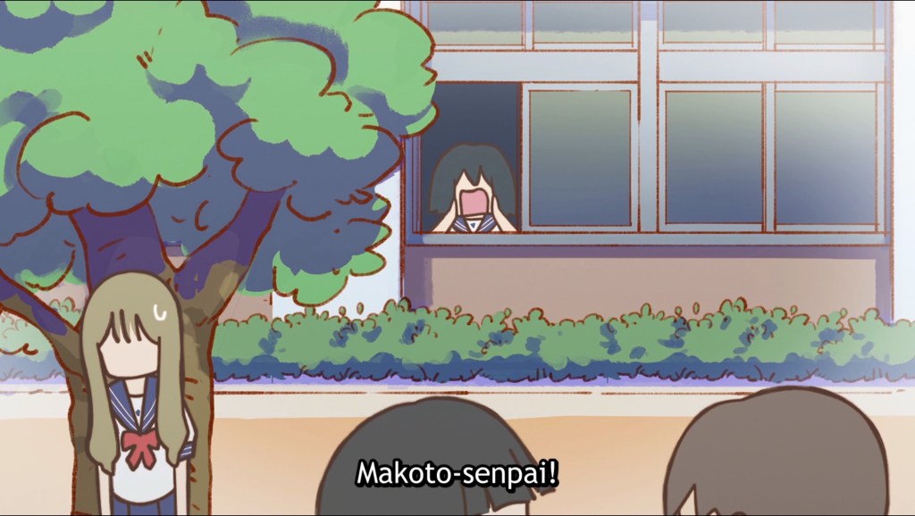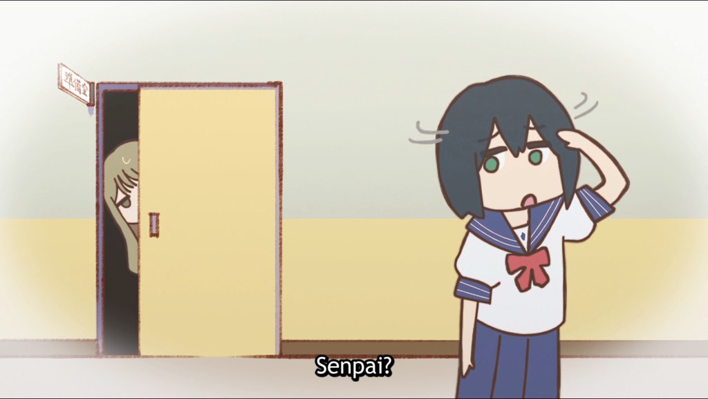 This is the kind of premiere where it sounds like there are going to be some real, substantive issues to engage with, but it turns out to be pretty vapid. And I’m using that term quite pointedly: Merriam-Webster defines vapid as “lacking flavor, zest, interest, animation, or spirit,” and this is exactly what’s going on with this episode—quite literally, in the case of the animation. Roughly half of the runtime is animated in chibi style, but rather than being cute and dynamic, it’s pretty flat with thick, crude linework and non-existent backgrounds. This lack carries over into the regular animation sequences too, so that it’s clear that studio Project 9 is cutting some corners, which is not a good sign.