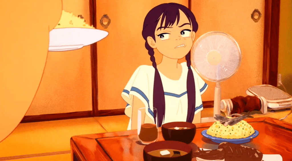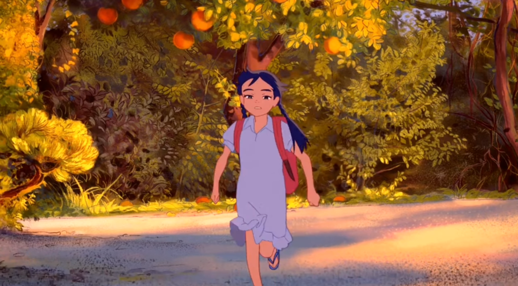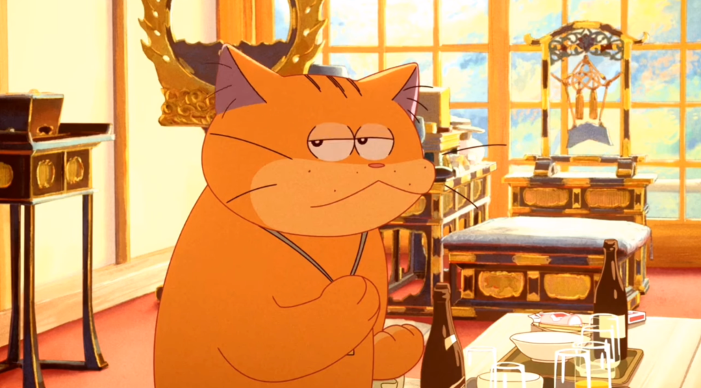 But it is the look of Ghost Cat Anzu that makes it truly memorable. Much like Anzu himself, this film bridges worlds, bringing together Japanese and French animation in a co-production between anime powerhouse Shin-Ei Animation, which oversaw the storyboards and animation, and auteur studio Miyu Productions, responsible for the color design and background art. The result is magical, with lighting and hues that make the entire film glow with the radiance of golden hour. The color design is textured like watercolor paper, akin to Do It Yourself, but using a richer, deeper palette common in French animation and reminiscent of post-impressionist painters like Gaugin and Van Gogh, though the backgrounds are more impressionist in style. It’s a beautiful merging of animation traditions that I hope we see more of in the future.