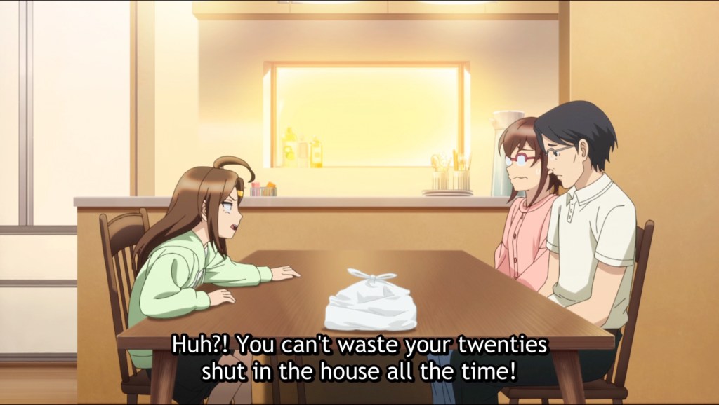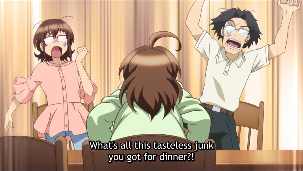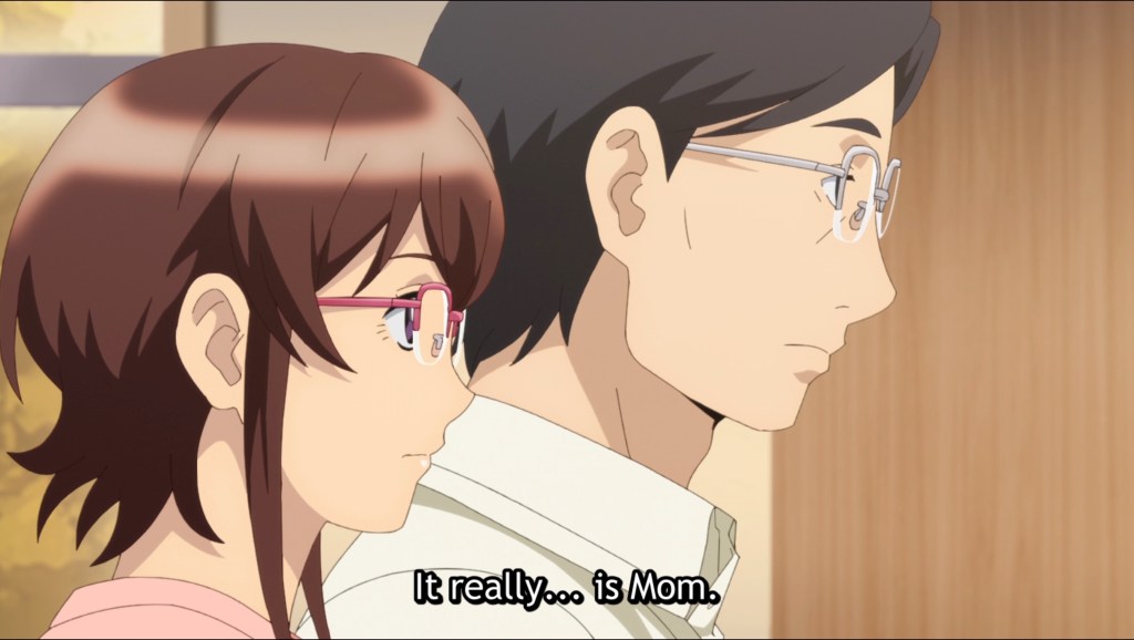 Let me get this out of the way: I don’t think this one is going to be pervy. Yes, Keisuke is dangerously oblivious to the optics here, but not criminally so. And the first episode alone—this is in fact a double episode premiere, more on that later—is quite deliberate in keeping things subtext-free, defining the married couple’s relationship through food and the preparation of bentos, rather than physical attraction. So this means that when they are “reunited”, it’s about the food—he’s happy to eat it again; she’s happy to cook it again—and not anything physical. What’s more, right away in the scene following the reunion, Keisuke is provided with a romantic interest at work, as a young woman seeks him out to eat lunch together, and eventually makes him a bento of her own (which is akin to an engagement in the lore of this episode!). I take this as the writer’s way of saying, “Don’t worry, this isn’t that kind of story.” Phew. Now, episode 2 is where things get interesting, as the POV switches to Takae, or Shiraishi, as it turns out she is now known—though only for the past year or so. What becomes clear is that her home life is neither happy nor safe. So when her former family picks up the old habit of treating her like the head of the household, the responsible, mature adult in the family who is there to sort them out, she falls into the old pattern too, as a form of escapism from her new, far more unstable life. This is what gives this family comedy-drama the potential to do great things in terms of its exploration of humanity and relationship: as Takae, she always went it alone, never letting anyone help; but now as Shiraishi, she is the vulnerable one, the child in an abusive household. How will this play out? Will her old family notice how she’s struggling? Will they step in and protect and care for her for a change? Or will they keep relying on her so much that it blinds them to who she is now and what she’s going through? And for her part, will she open up and let them help her? This series is set now to tackle not only grief and finding new hope, but also another profound question of human existence: can people change? And when and how should they? I, for one, am looking forward to this journey.