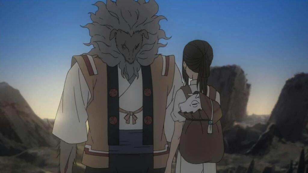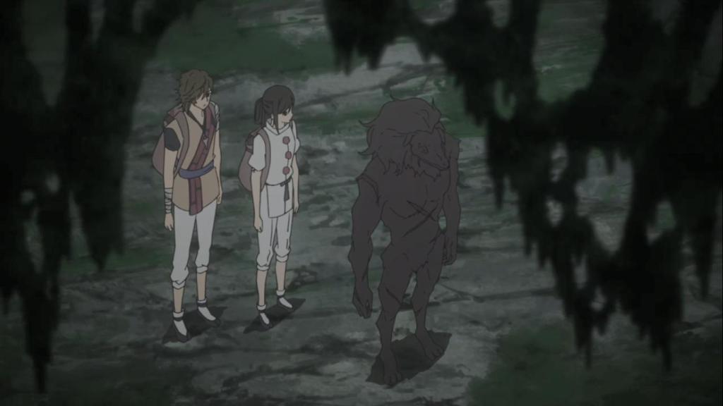 Tragedy, fear and callousness made this rural Eden a faded, soul-crushing hell. This is indeed “the bitter tastelessness of shadow fruit.” As the ending song puts it: “In my chest, I carry a green apple that wets my eyes.” Our characters’ dark enlightenment is complete when they learn that the so-called Bakenezumi, “Monster Rats”, mole-looking creatures that live in tribes, wage war and occasionally provide services for the humans of the villages, are talking, rational beings.