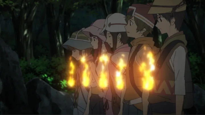 The suspicions get confirmed fast. The unthinkable happens. A camping trip full of friendship and budding love takes a turn toward darkness. A creature the village calls the False Minoshiro, a being who should not be listened to, tells our characters that after psychokinesis was discovered in 2011, our own civilization fell like a second Roman Empire, engulfed by murderous psychics, social collapse, and the bomb. Just like that, it was a thing of the past. An age of darkness had begun.