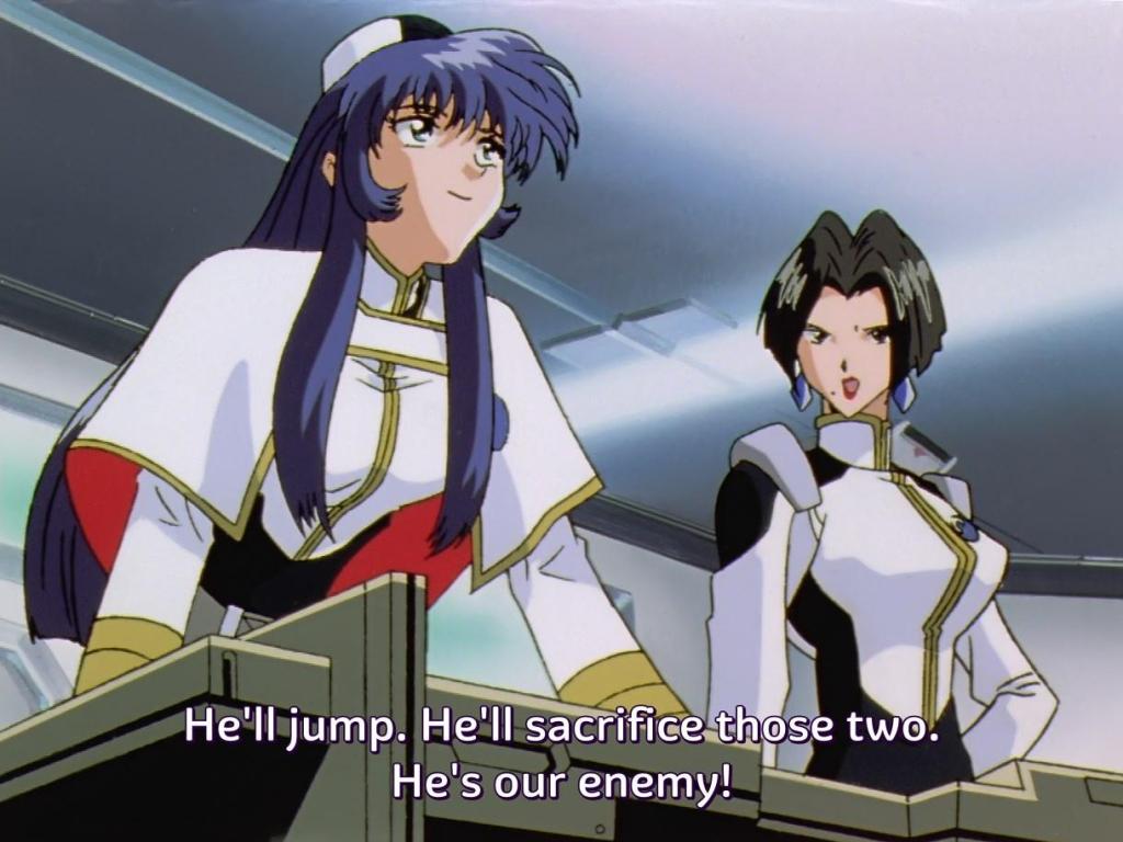 The series’ surface is quite by-the-numbers. Like Kyon’s or Shinji’s, Akito’s three potential love interests embody three different paths. Pursuing Megumi, a coworker (and voice actress!) leads to a normal life on Earth. Pursuing Ryoko, a fierce young pilot with issues, would bring them companionship in the continued battle. But the bright and chaotic Captain Yurika ties him to the past he rejects and to a crazy, unpredictable future in space. The story is quite the cumulative romantic avalanche, with “true loves” overwhelming Akito with their crazy advances. So, will they? Won’t they? Your guess is as good as mine.