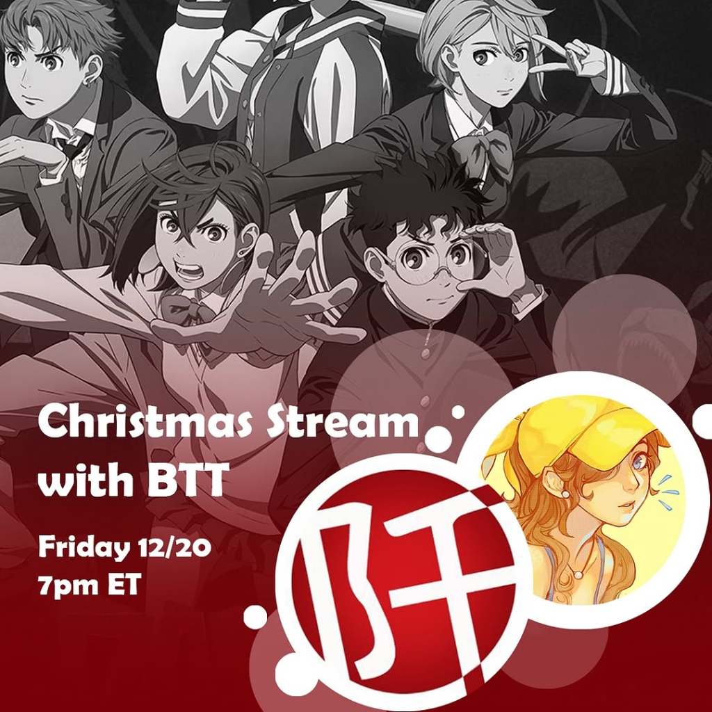 This illustration is reminder, too, that we’re creating Christmas Dandadan art! That’s right! Our artist Whit is doing a Christmas-themed live stream on Twitch tonight where she’ll be drawing Dandadan fanart!