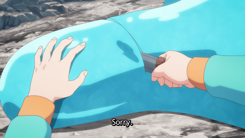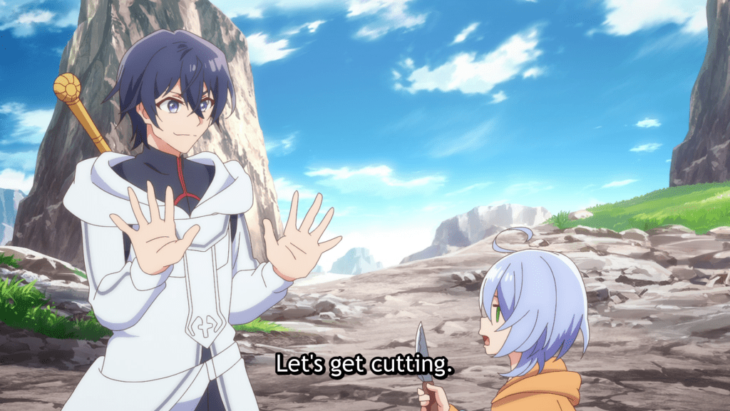 Some viewers enjoy grimdark fantasy anime; then there’s me, who’s come to really enjoy series that feature a lot of action but are generally light-hearted and optimistic in nature. And that’s exactly the vibe that Bogus Skill “Fruitmaster” gives off. There are hints of sinister goings-on with evil-grinning characters in the OP (which has an addictive beat, by the way!) and the laser-eyed and perhaps not-so-Holy Sister, and of character conflict due to a final scene involving Lena and Light, but even these bits and pieces seem to be setting the stage for a mild series that will focus more on character relationships (see Light, Lena, and Ayla happily running together throughout both the OP and ED) and not-terrifically-brutal action. A recent comp for this series might be The Wrong Way to Use Healing Magic—it has a similarly positive and action-packed feel. And if Bogus Skill “Fruitmaster” can match the fun and warmth of that series, it could be a positive surprise this winter season!