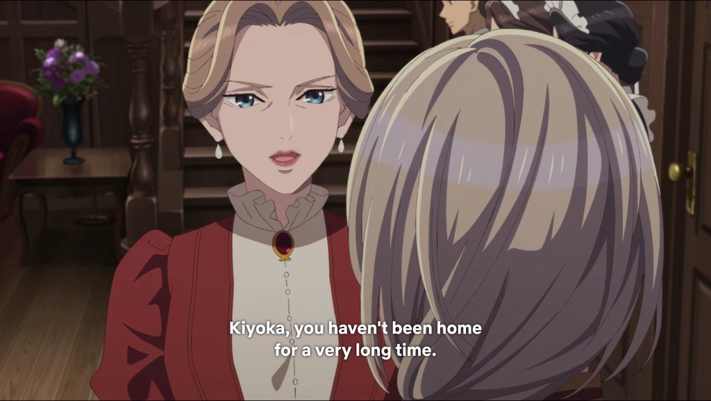 It’s back! And just as sweet and lovely and beautifully animated as before. No dip in production quality here from studio Kinema Citrus, who continue to stun with their rich visual storytelling (those backgrounds!). While season 1 was a bit of a slow burn not just in a romantic sense, but specifically in terms of the fantasy and political elements, this episode makes it clear that My Happy Marriage is now a veritable blazing conflagration as the machinations kick off with Prince Takaihito and the Usuba clan, and Miyo’s unique power begins to blossom. Ramping up the intrigue and magic gives the story a new lease on life, while bringing in Kiyoka’s absentee family adds a whole new layer of tension and melodrama to the interpersonal side of the story as well. I won’t spoil it, but let’s just say that the encounter with mother dearest was pretty shocking! Kiyoka’s parents do not seem at all well suited to one another (or to raising children!), but their dynamic explains so much about the young man’s icy manner and locked-up emotions, as well as his determination to pursue kindness as best he can. The episode is not all drama and tension though, being dotted with moments of humor and growing affection between the young couple as well, making for a satisfying episode, regardless of whether you’re watching mainly for the fantasy and intrigue or the romance. The voice acting remains top-notch, and the music seems to have opened up to explore new vistas, with more playful and fantasy-inspired pieces providing a backdrop to the expanding world and lives of the young couple. Season 1 was a delight, but it feels from this premiere that the real story is now about to begin! Looking forward to it.