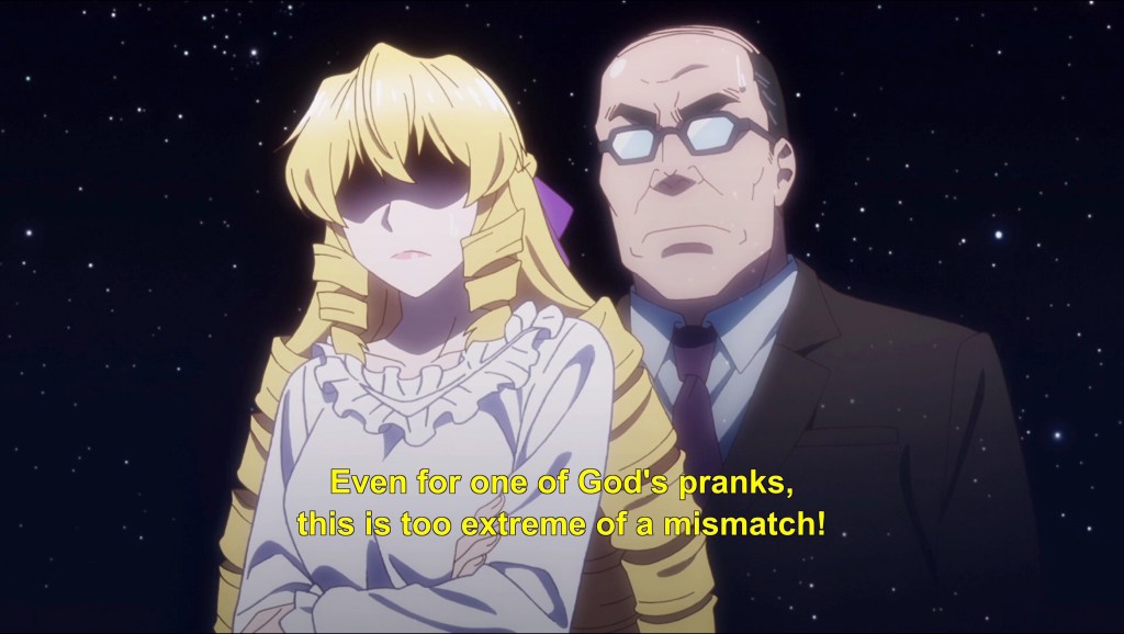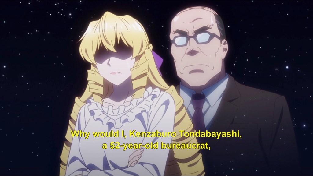 I am a total sucker for villainess series, but let’s be honest, the twists have pretty much all been done, right? Not so fast! From Bureaucrat to Villainess manages to bring something totally fresh and terribly funny to the genre, playing both the genderswap and maturity cards to great effect! Even Kensaburou’s bureaucrat background proves both surprisingly relevant and entertaining. He had me laughing from start to finish! I especially appreciate the generational differences between his classic otaku reference points and his daughter’s otome game obsession, and hope we get more flashbacks to his original life (I want to meet his wife, who is apparently just as big an otaku as the rest of the family!). Kensaburou is a charming character, as both himself and as Grace, and his fatherly wisdom is actually pretty on point. The animation is solid, and the decisions to frequently shadow Grace visually with Kensaburou and use two different voice actors for inner speech and audible dialogue work really well. The rest of the cast are fairly one note so far, but this doesn’t hurt the episode, considering how well Ken-Grace carries the lead. The rest of the cast will grow and develop over time, I’m sure. All in all, sign me up for the rest of Dad’s reincarnation story! (Will his daughter notice a change in the villainess of her favorite game, perchance???) This one offers up some rip-roaring fun!