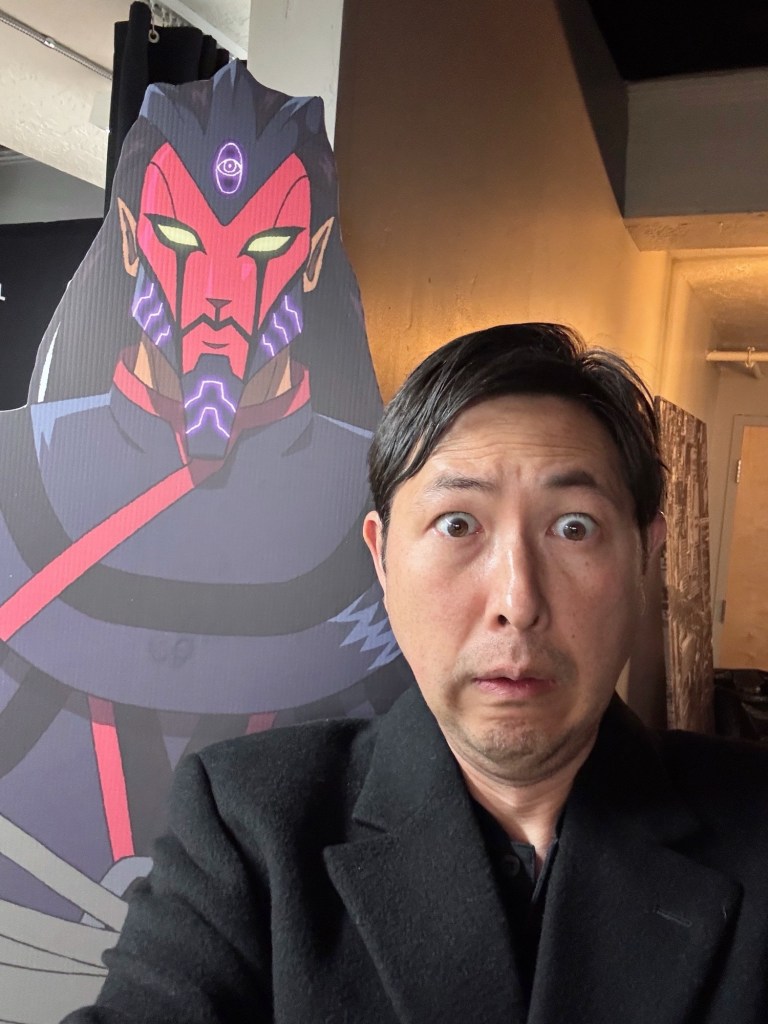 What caught my attention, though, was the room itself. The reserved area for those directly involved was filled with rows and rows of people. It certainly wasn’t just the four guests of honor; folks like PEABOD, the dynamic musician who contributed to the soundtrack (with a banger of a tune!), attended and later performed at the after-party, and Bryan Atkinson, who produced the very cool and distinctive soundtrack, and whom I also chatted with. I met thoughtful producers, other incredible staff, and the wives—oh, the wives!—who played key elements in developing the series, too. There were so many others who weren’t on hand—some of whom I’d known previously from being involved in animation, manga, and faith, but hadn’t known that they participated in the project, like Gene Kim.