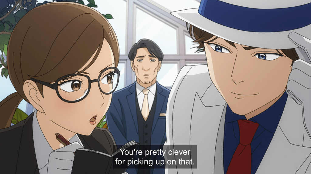 Oh my goodness, this was hilarious! I wasn’t really sure what to expect because while I had heard people say the character design was by the same creator as Firefly Wedding, I didn’t know if I would be into a “mystery” anime. However, there was so much more that this first episode offered than simply a murder mystery! Reiko is a very fun, endearing heroine who is extremely earnest, especially in her friendships, but I would say as a detective too. I really liked her “boss” as well, and the energy these two offered when interrogating others had me bursting out laughing more than once because, as the butler Kageyama states, are they even smart enough to be detectives? (And he worded it even worse than I am here! Ha!) While I do believe Reiko is a good detective and is the “grounded one” of the two detectives, I wonder how in the world her boss came to be the lead inspector because his interrogating skills could use a lot of work! Even I know you can’t simply say that X person is the culprit because they match what the victim described! There were other people dressed the same way and were potential culprits too! Maybe that sounds like a complaint, but because the humor came directly from these moments, I deeply enjoyed my time watching this first episode! The opening and closing songs were wonderful, and I hope they won’t be too hard to find online because I’m looking forward to listening to them again! Overall, if you’re looking for a quirky and humorous detective comedy, this is one I would suggest giving a try! I am definitely thankful I gave it a chance because I will now, unexpectedly, be looking forward to future episodes!
