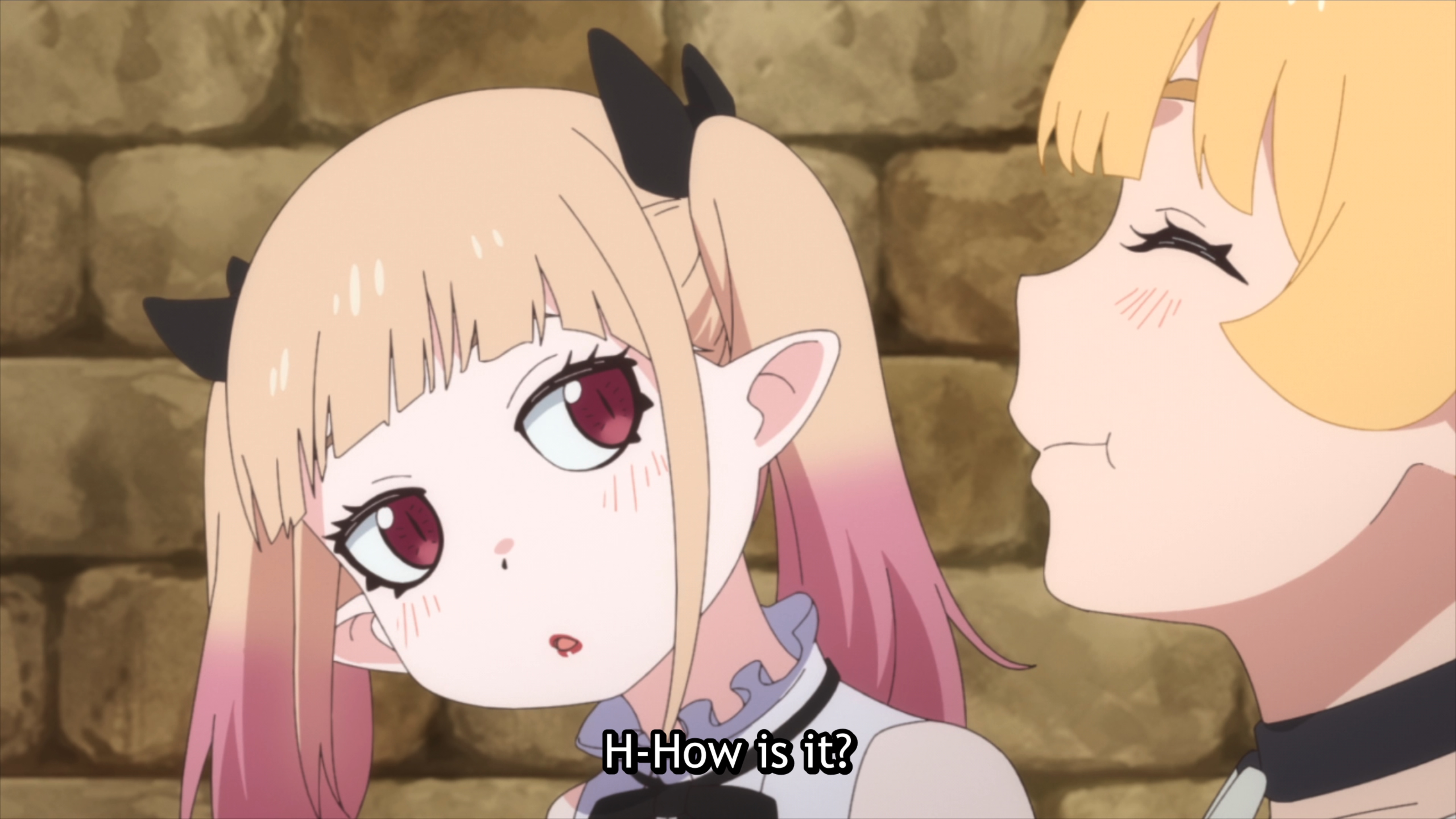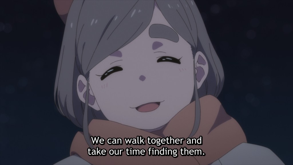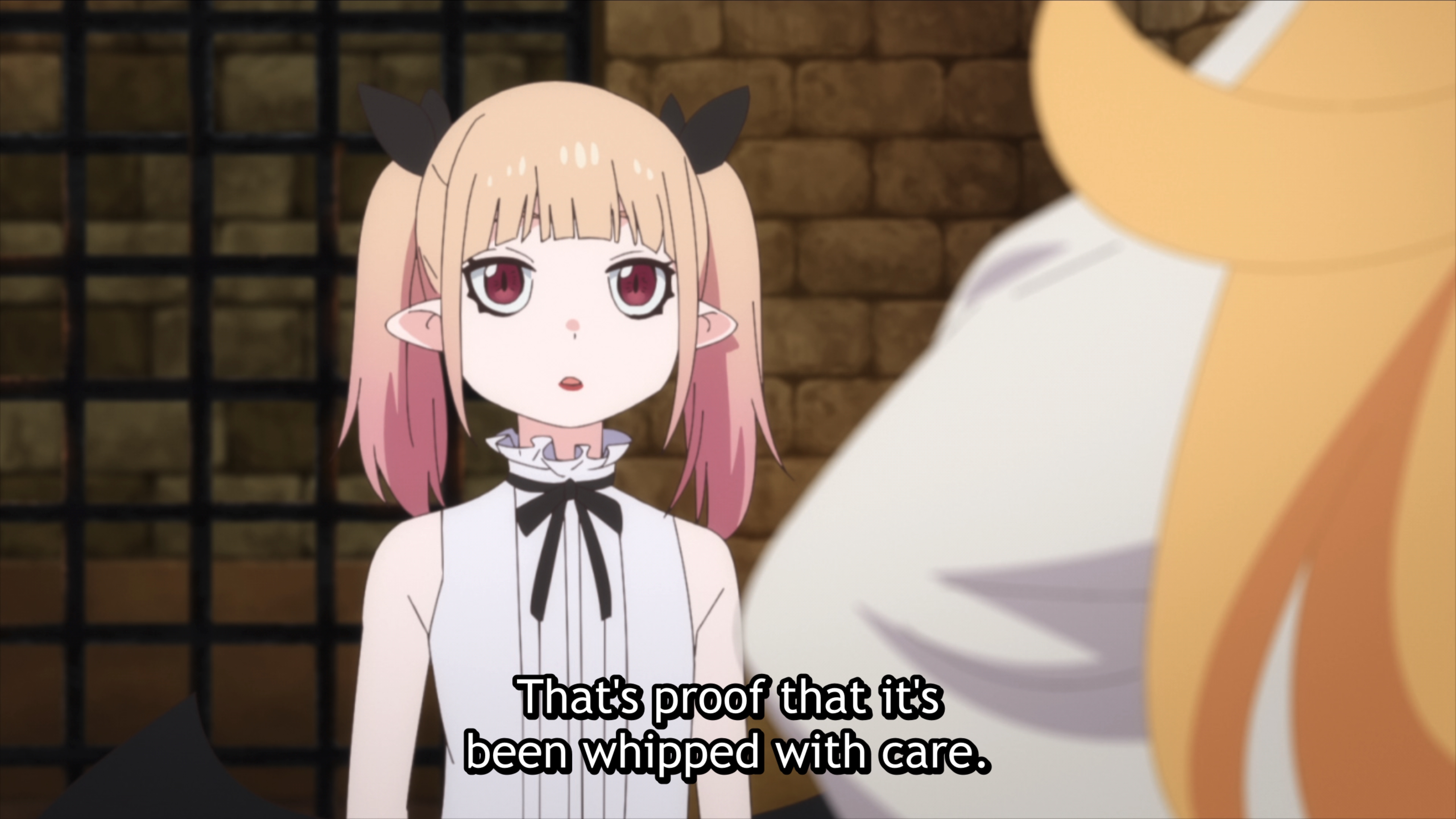 There’s still one final revelation to explore here—both in scripture and in Hime’s journey with discovering delight. You see, Hime is transformed by delight, not simply through gaining friends and found family, but because it changes how she sees the world and others in it. The change in her is made clear in the episode immediately after the starry walk with Mama, when we see that Hime has become someone who can extend this same gift of being delighted in, as Mama delights in her, to someone else. That is to say, if in episode 8 Hime is the little star, the child in the family, by episode 9, she’s become a big sister, welcoming a younger, but equally stressed-out, child into the warmth of family. This kid just so happens to be the daughter of the most malicious noble house among the Hellhorde, Vanilla Peschutz.