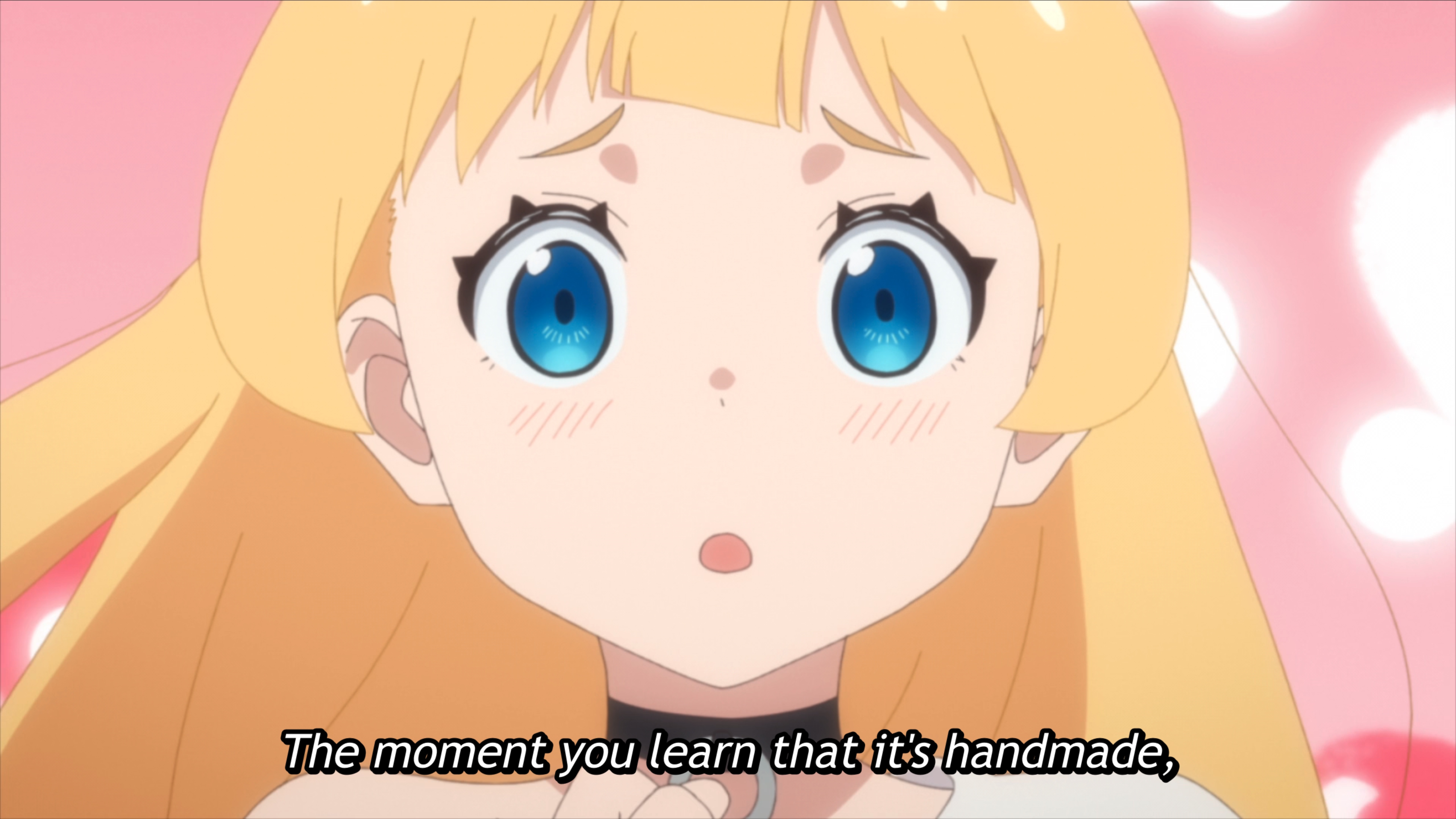 But here’s the thing: After these few months of “torture” and learning to really savor seemingly mundane things, Hime looks at that cake with a completely different set of eyes than what she may have done when she was still the battle princess. Instead of a sloppy lump that is completely unappetizing, Hime sees the effort and admiration—even love—that Vanilla has poured into her baking. There is no way Hime would have been able to see these things had she not been essentially training to celebrate the little things. But now, she can’t help but see that this cake was made with the intention that it be enjoyed. And so Hime can’t resist it, because Vanilla made it for her. She can’t resist celebrating the girl’s efforts, and she’s on the verge of caving yet again, when Vanilla, moved by how seen she feels by Hime, lets her off the hook. Even so, it turns out that Vanilla nailed it after all with her sloppy cake, because Hime has changed.