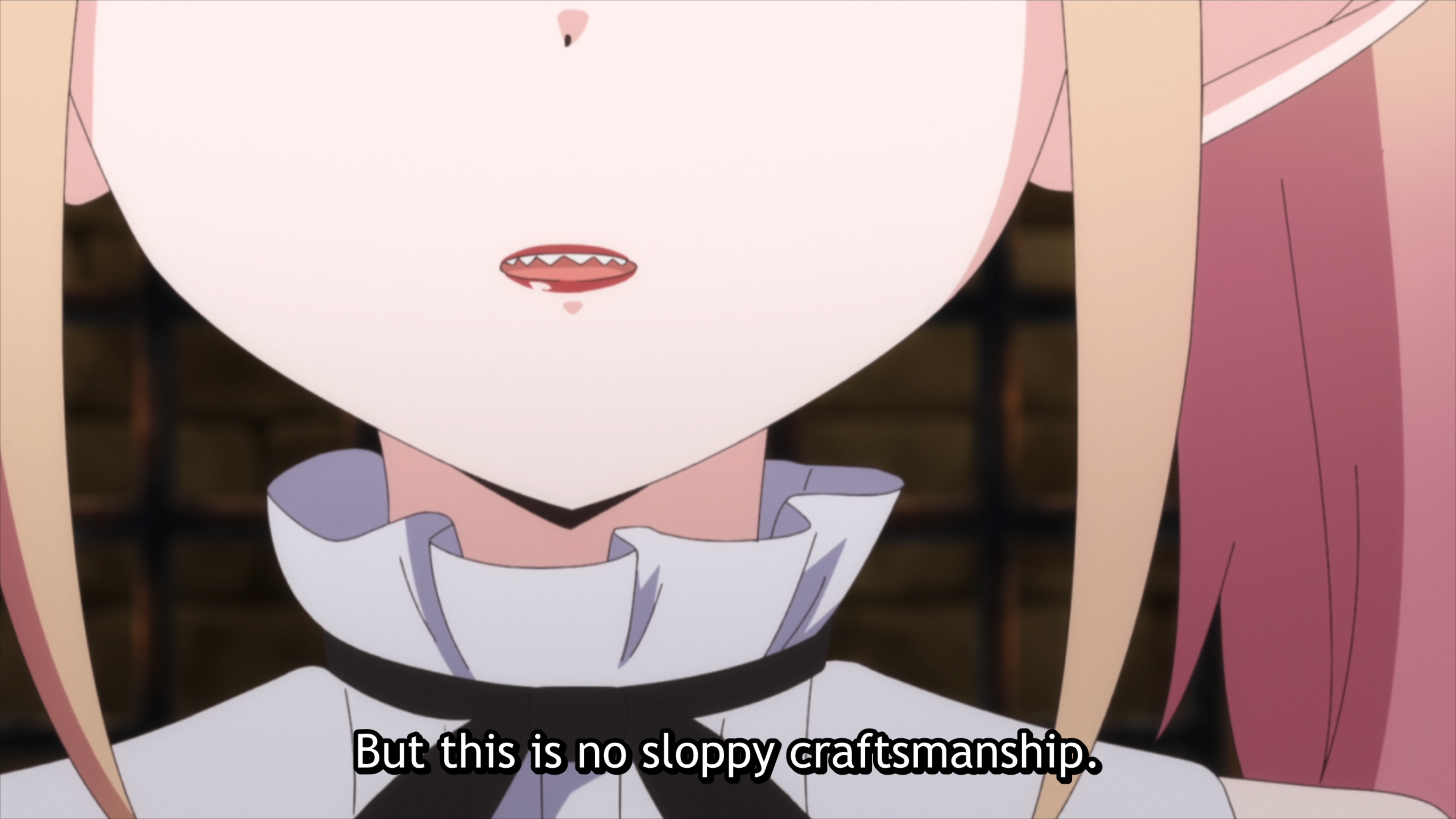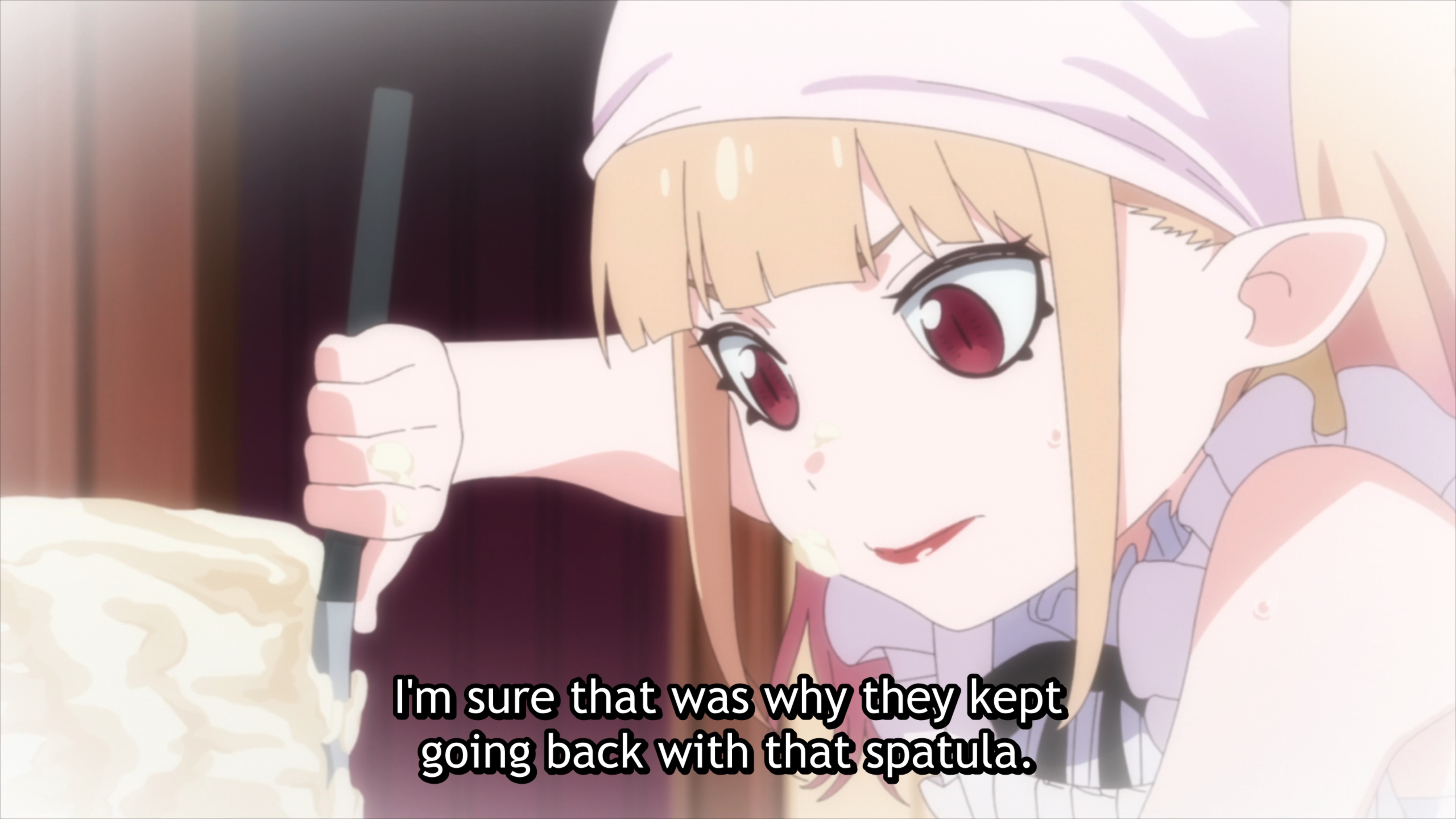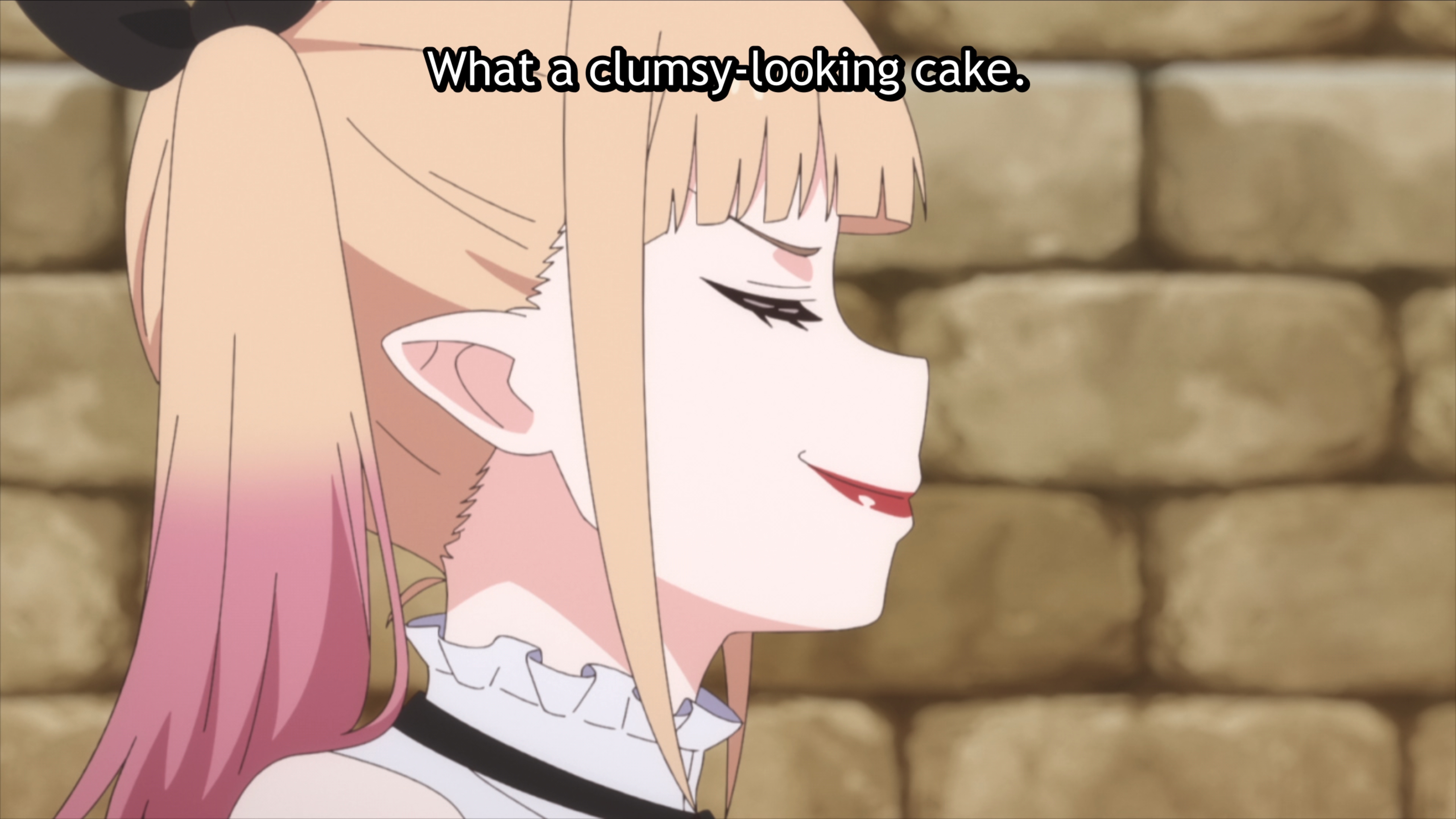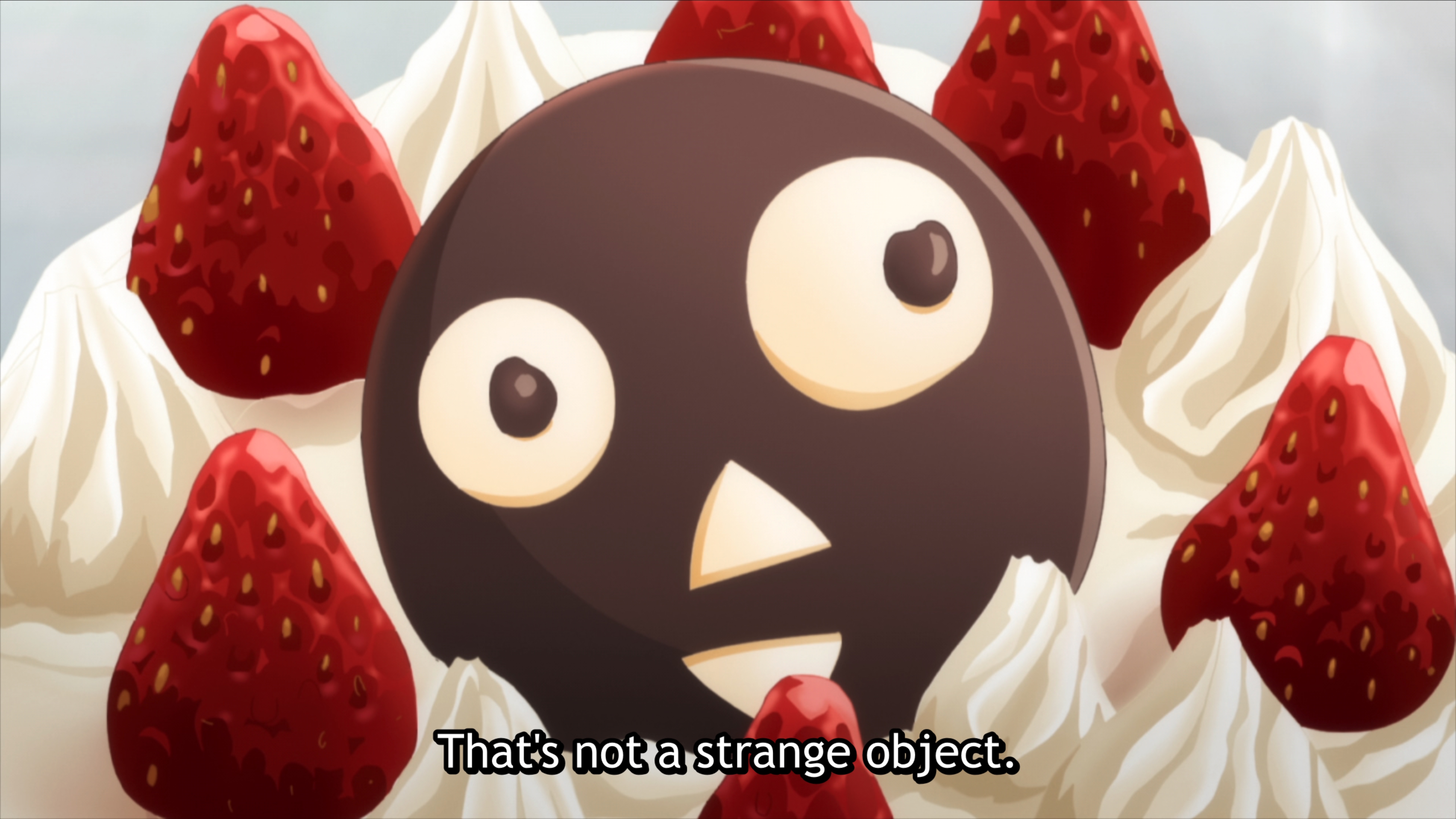 It’s young Vanilla’s first go at torture, and her strategy is to bake a cake so mouth-watering that it will make Hime cave. The problem is, Vanilla doesn’t know the first thing about baking, and the cake turns out like something you’d see on that Netflix series Nailed It, that is, a frightful mess! Hime’s talking sword gloats over the baking disaster: Finally, an easy win for Hime, right? She’s not going to spill any secrets this time…right?