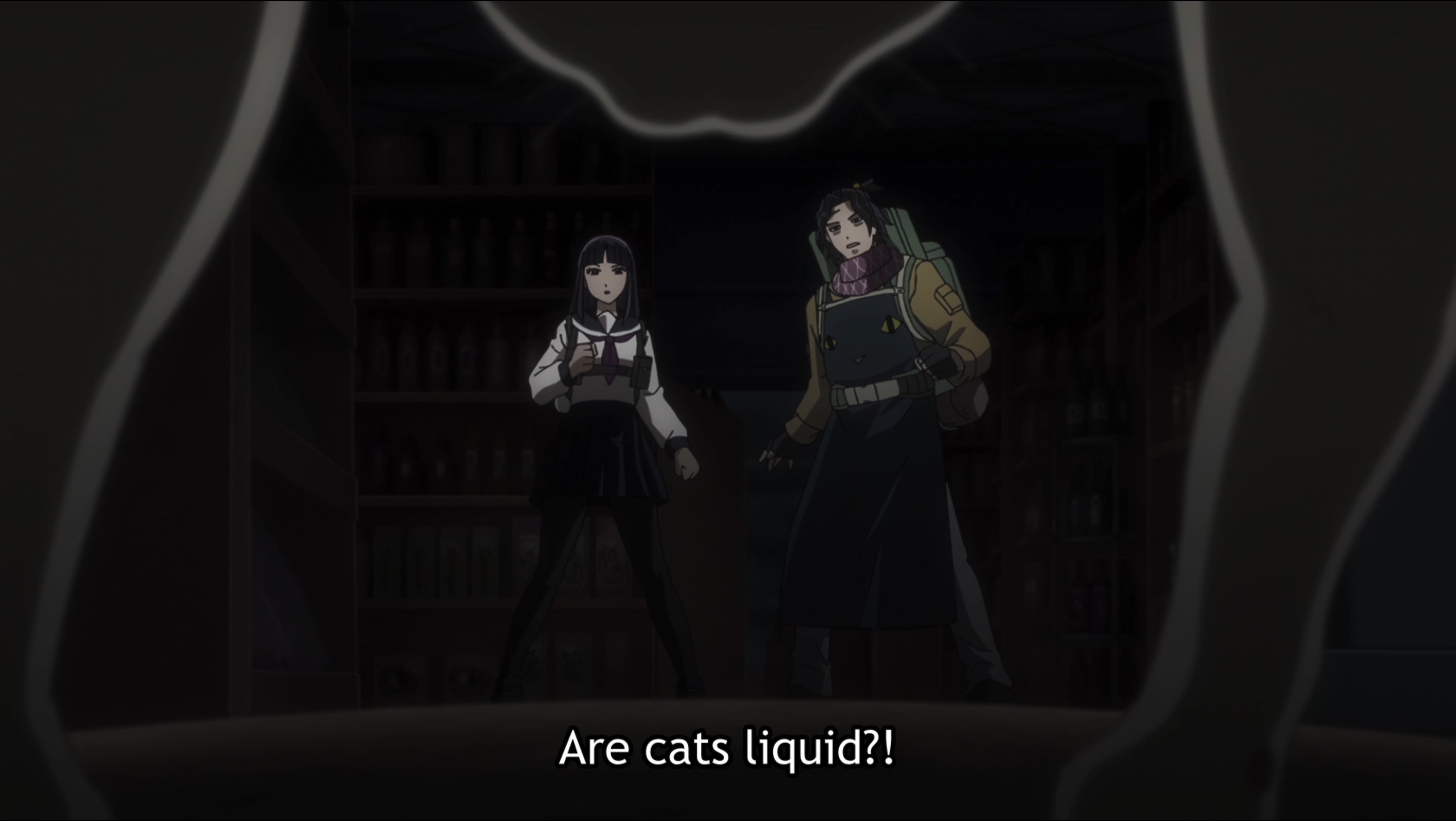 Move over Spinal Tap, Robin Hood: Men In Tights, and Blazing Saddles! Make way, Shaun of the Dead! There’s another parody-that-is-better-than-the-original in town, and it’s got cats. CATS! Nyahahaha! I loved it. This premiere hits all the right beats of a zombie (comedy) horror, but with 100% felines, and everyone knows that cats make everything better. (Witness: Jurassic Park but with a Cat.) Seriously, it’s dramatic, it’s comedic, it’s infinitely relatable. The angst, the inner conflict, the heartbreak! What is a cat lover to do when the fur balls become humanity’s Enemy No. 1? (The meme harvest will be plentiful with this one—see below for the firstfruits.) The full range of emotions is on display here, with compelling character acting in the animation and voice performances. The cat animation is some of the best I’ve seen, even when CG is used. Which is saying something, because there are some pretty funky-looking felines out there in anime land. Meanwhile, the nods to horror film conventions peppered throughout make it a rewarding watch even if you aren’t a huge cat fan, with a thread of mystery as well, in the form of the strong, silent type who doesn’t know who he is, having recently lost his memory completely, apart from his encyclopedic knowledge of felis catus. Special mention goes to the montage of classic horror film poster rip-offs (featuring Cats) in the ED, and the Aggretsuko-style heavy metal soundtrack that bursts on the scene at appropriate moments (for both dramatic and comedic effect). This is a delightful genre mashup that is perfect for summer blockbuster season! (There’s even a post-credit educational sequence!) I have zero sense of where it’s going, but I’m along for the ride.