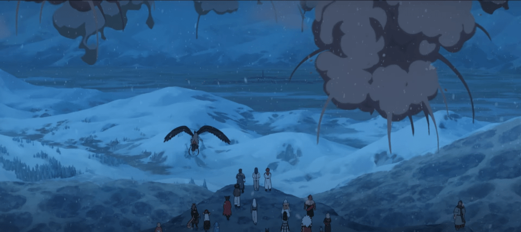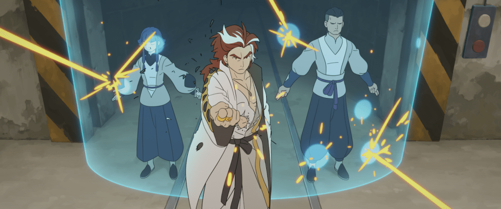The highlight of the movie, though, is the tightly choreographed fighting scenes. Most animation tends to be animated on the twos, which means that the storyboards depict every other frame of the action. In contrast, directors MTJJ and Gu Jie animated the ten action scenes on the ones, meticulously mapping out every frame of the characters’ movements. As a result, fights that would appear chaotic and disorienting flow smoothly; characters glide effortlessly through the environment, enabling the film to focus on the way that they use their unique physical and magical abilities to their advantage. Granted, I did find that a few of the fighting scenes were too frenetic to follow, but on the whole, the film will satisfy viewers looking for an exhilarating action movie experience.