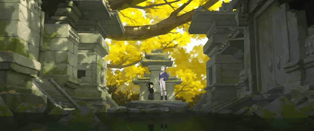 This blending of opposites also helps convey one of the core themes of The Legend of Hei 2: the uneasy coexistence of humans and spirits. Though the spirits decry the violence and cruelty of humans, they rely on the creature comforts of human technology in their day-to-day life. Case in point: my favorite character in the movie, the nerdy elder Naya, is a spirit whose pastime is playing fighting games on his Switch. By integrating nature and technology, the past and the future, the movie depicts an origin story of humans and spirits caught in perpetual tension with one another, wordlessly setting the stage for the conflict that Xiaohei and the others find themselves in.
