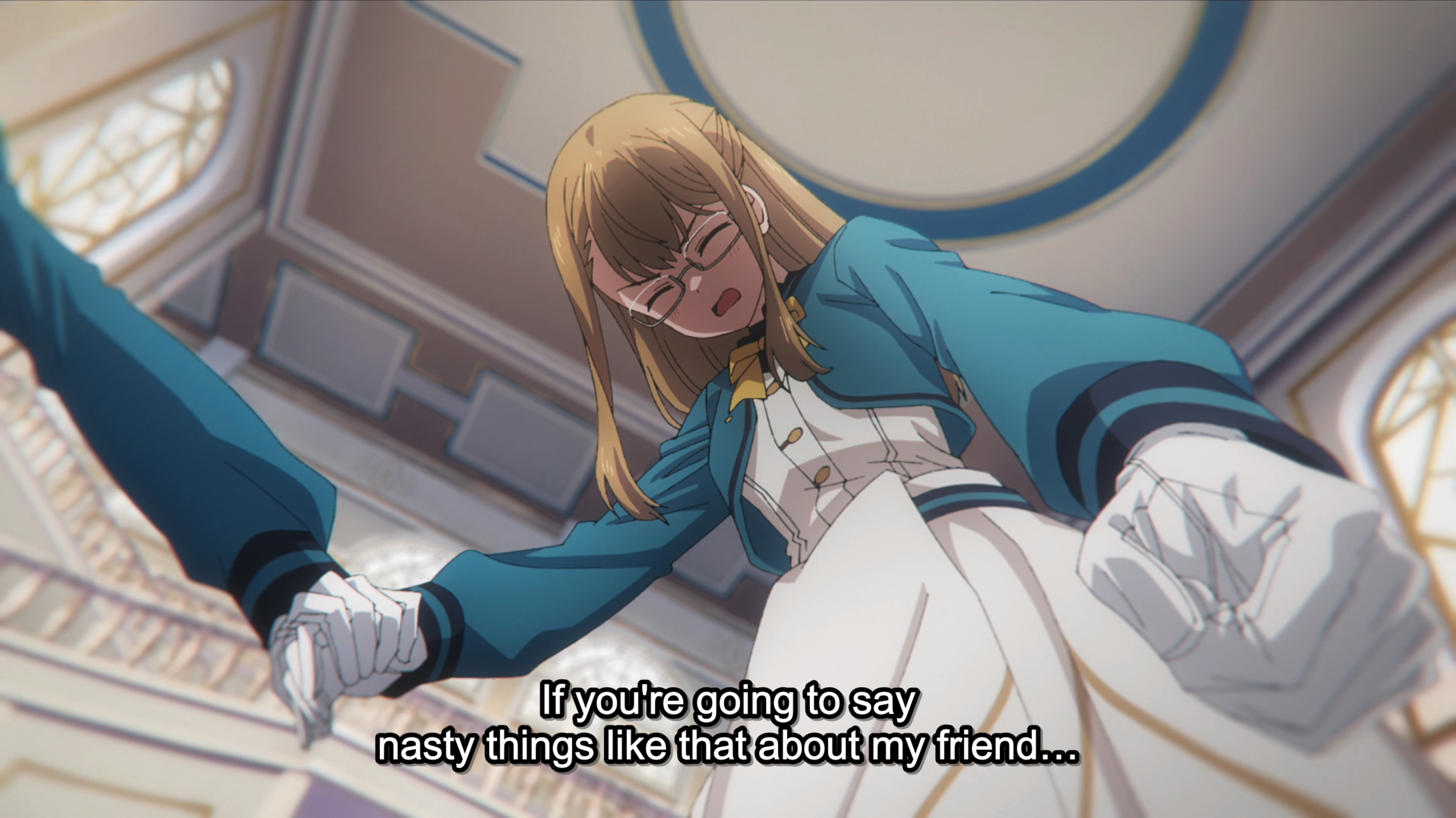 In Monica’s case, there is no apology or renewed friendship, but Bernie does finally show the Silent Witch the respect that she is due after his rescue, and he abandons his plot to persecute her, even keeping her secret. But even if he had persisted in his harassment, Monica herself has changed: When she first realized there was a chance she might encounter Bernie, the shy girl was shaking in her boots, and the terror and resultant inaction only intensified each time Bernie crossed her path. But after choosing to love her enemy, Monica is now free of the fear that Bernie had come to represent for her. She is firmly on the more perfect path, and it’s healing her each step of the way.