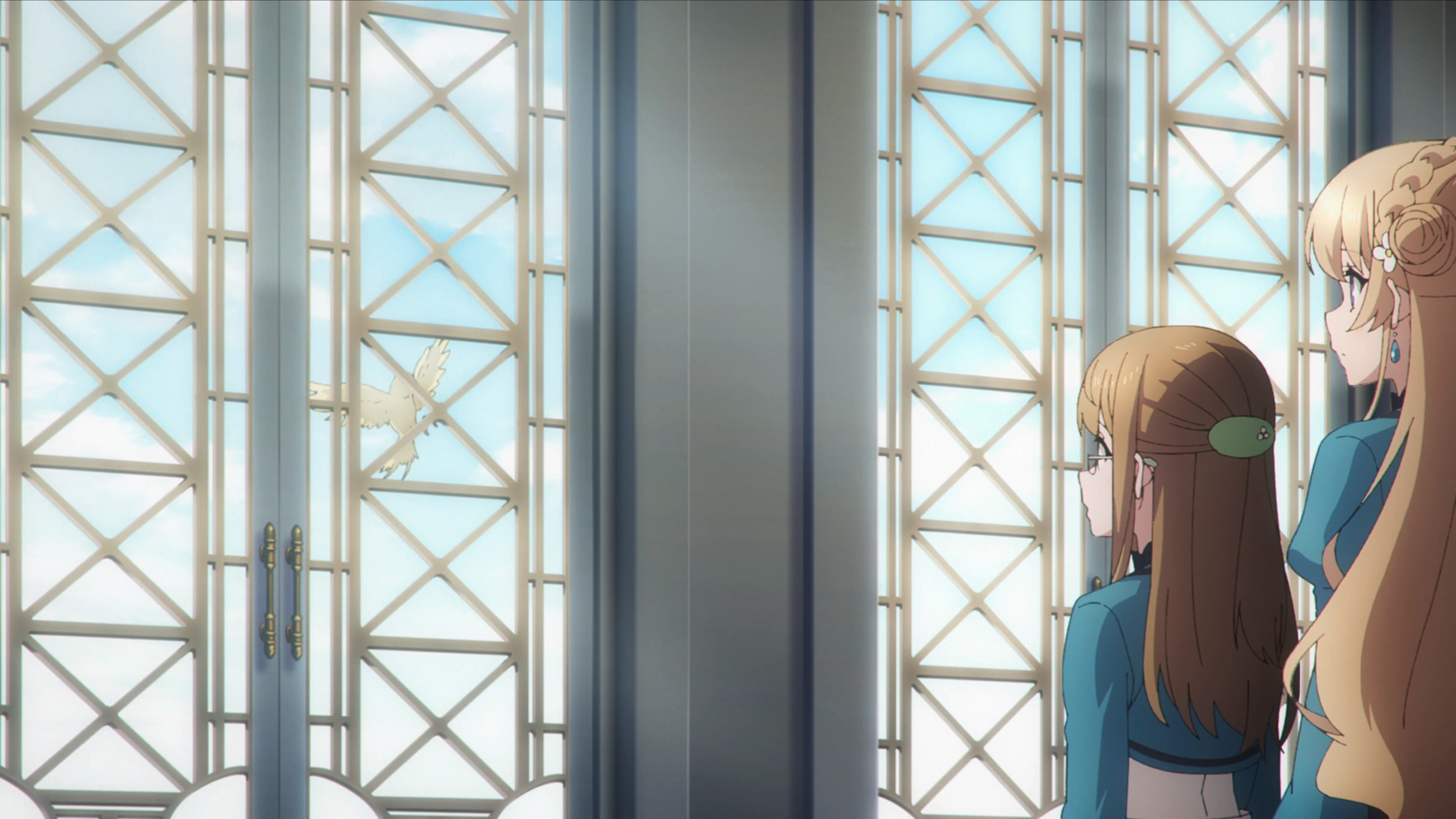 Ryn, the bird spirit who watches over and advises Monica, catches her attention, and in the next scene, we see Monica burst into the room where an evil body-shifting dragon mage, having disguised itself as a teacher, is now attacking Bernie. Without hesitation, Monica turns all her efforts against the evil being, defeating its plans and saving Bernie. This is how Monica loves her enemy.