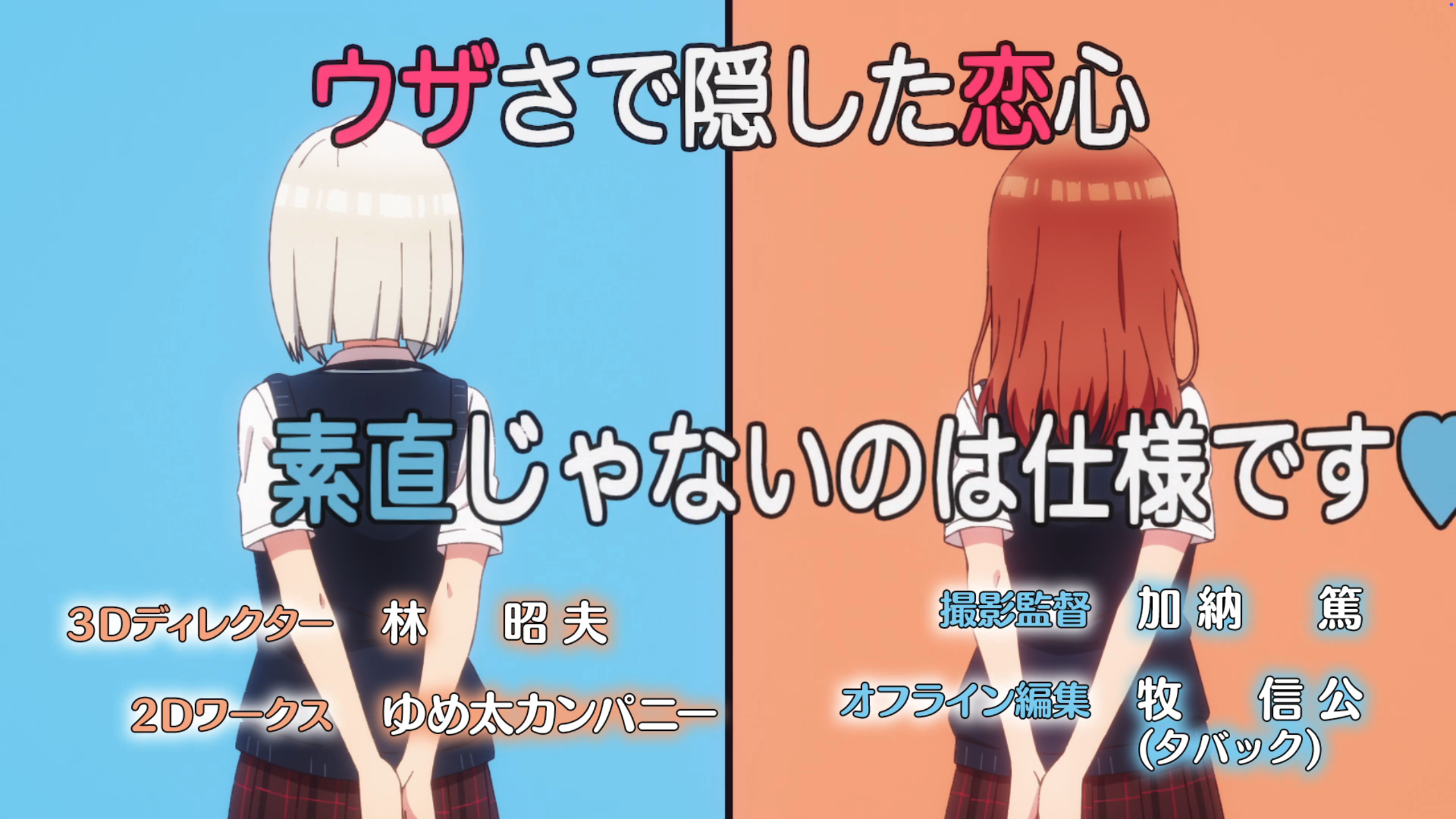 So first of all, I associate this show more with Aharen-san than Takagi-san; the female lead is the key part of these romcoms and Kashiwada is clearly appealing to the kuudere fans like Aharen-san does. That said, the show itself has a few moments that were amusing, namely when Kashiwada pulls the reverse switcheroo on Oota. Other than that, I do have to agree that this show doesn’t quite have something that I normally want from rom-coms. I think the issue is that the “chemistry” between the leads isn’t quite there; they’re clearly interested in each other but in a way that doesn’t quite suggest the potential of a deeper relationship. It’s cute enough that I’ll probably at least watch a bit more—kuuderes are great, after all—but I doubt it will be anything more than a lower-tier diversion for me.