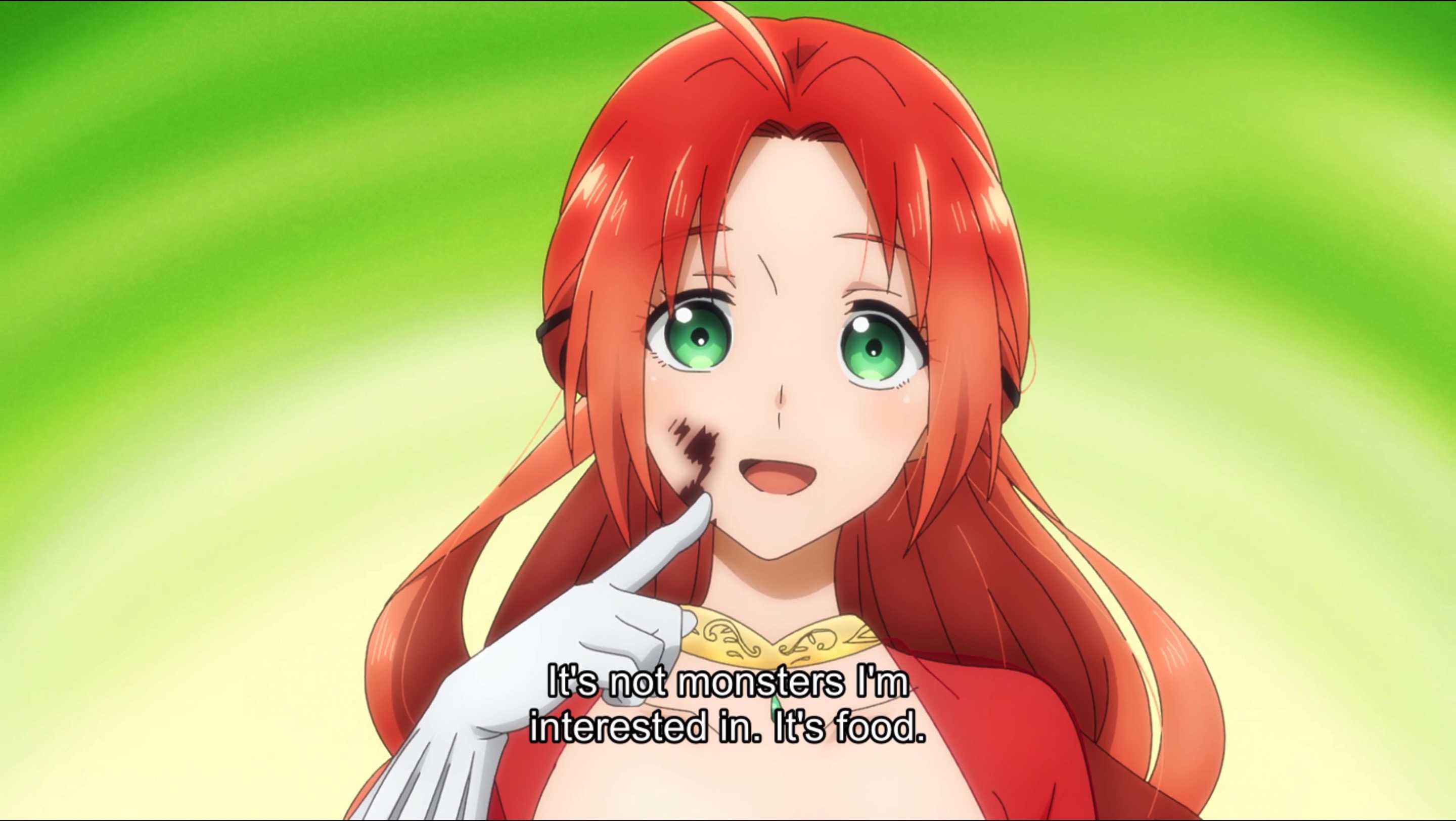 Scarlet woke up and chose violence. Every. Single. Day. And it’s pretty hilarious, even cathartic! She’s a kind of accidental vigilante, in that she enjoys punching up people who annoy her, and coincidentally, the kind of folks who get on her nerves are limited to pompous rich dudes who trade in slaves and street toughs who beat up and rob children. She doesn’t mind poor kids who scam her or knights who speak rudely to her. They’re safe from her fists of fury. Even so, it’s refreshing, if ever so slightly uncomfortable, to have a “villainness” who actually is just a teensy smidge villainous. Will she continue to advocate violence throughout the season, or is she in for an arc? It’ll be a fun ride either way. Scarlet’s magic powers are also pretty interesting, particularly in the way that they complement, rather than outrank, her natural, physical abilities. In terms of the animation, there’s a really great sense of timing on display here, freeze-framing Scarlet’s haymakers at just the right moment, nailing the physique of an MMA fighter in motion, and doing an all-around fab job with the action sequences. I could watch Scarlet punching smarmy evil-doers all day! Looking forward to this one.