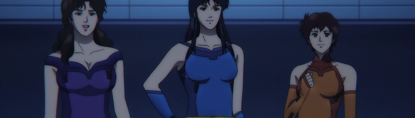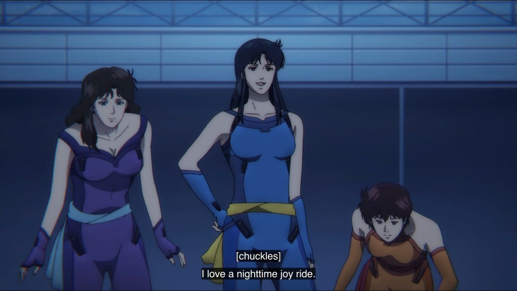 This series is actually a wish come true for yours truly! Last year, I travelled to distant lands (Wales) to attend a little anime festival, which featured a screening of City Hunter The Movie: Angel Dust. Said movie was a near total bust, being so thoroughly permeated by lame, repetitive, sexist “humor” as to render it not worth reviewing—except for the opening sequence, which centered on a group of retro 80s, aerobics-ready sisters who committed high end mischievery with killer moves and biting one-liners that had the entire audience belly laughing (in contrast to the awkward silence that suffused the theater throughout the rest of the film, when the focus shifted to some smarmy dude). Anyhow, at the time, I thought to myself what a shame it was that the film hadn’t stayed with these sisters, as that opening sequence had reams of potential for quality entertainment, especially for audience members who can recall the first coming of the Big Hair and Leg Warmers era. Well, lo and behold, my wish was fulfilled!