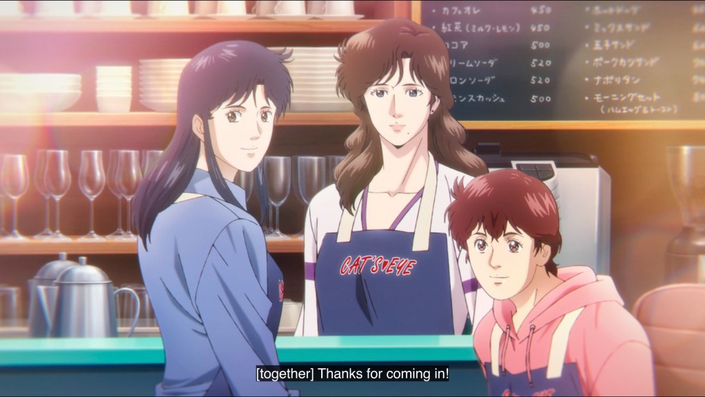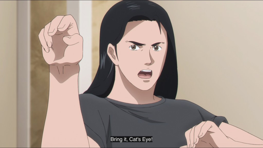 Cat’s Eye reboots the early 80s manga and anime that preceded the City Hunter franchise, and so far, it’s off to a fun start! The retro feel to the character designs and animation is refreshing and well-executed. This episode wasn’t as action-oriented as their sequence in City Hunter The Movie, but hopefully we’ll see a bit more of the power of aerobics in future episodes. The cats-and-mouse setup between the sisters and detective, who is already firmly wrapped around their paw, is playful and lighthearted, though they’re going to need some more challenging foes to keep the plot interesting. The music is a good balance of contemporary with subtle 80s vibes, while the world-building likewise combines present-day tech and comforts with retro elements. Each of the sisters has a distinctive face and build that goes beyond the usual reliance on color-coded clothing, height, and hairstyle that often distinguishes groups of girls in anime these days. It’s also really nice to have adult characters who actually look grown up! We get a hint of their differing strengths and personalities in this episode, without resorting to tropes or other easy shortcuts, so I expect these characters to reveal their individuality as the series progresses. I have a lot of questions about them and their motivations in light of the ending, but I won’t spoil that here. Needless to say, I’m intrigued! We’ll be getting half a cour over the next few weeks, and then the second half starting on Boxing Day. With that timing, my hopes seem even more plausible that this may be the unexpected gift of the season!