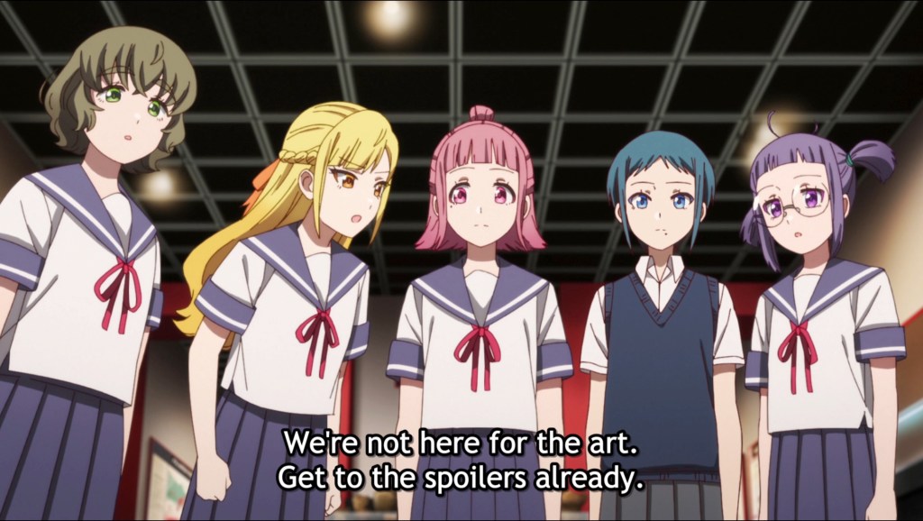 And Mai is having none of it. She rejects the shaman’s kami-sama and puts her faith in bowling. But not just the sport—this isn’t an idolatrous act here or a petulant protest from a secular teen. Instead, Mai shares the reason for her faith: There is always a second throw in bowling. There’s always a second chance. In other words, in this moment of crisis, Mai is putting her faith in grace. I’d even go so far as to say that, without knowing it, Mai is placing her hope in the existence of a true God who may just grant her the grace of a miracle.