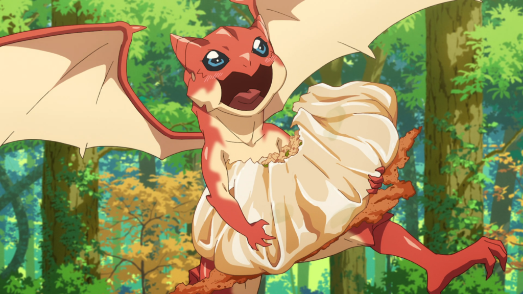 One of the very best “feel-good” anime of recent years has returned! And Campire Cooking doesn’t waste much time before it shows viewers what we’re all waiting to see—variations of delicious Japanese food. The gyoza looks scrumptious—no shock at all that it would attract the latest adorable addition to the crew in the form of Dora-chan. But continuing the trend from season one, this pixie dragon is no pushover—except when it comes to friendship and food! I love that the relationships in the series are so warm; they feel like a perfect extension of the scrumptious meals that Mukohda prepares, a picture of family and friendship borne of his desire to feed them yummy food. While there is a story here, and the end of episode one hints at some conflict ahead*, the stars remain the cute familiars and the MAPPA-animated feasts; that’s what we’re tuning in for and what the studio once again is delivering in season two.